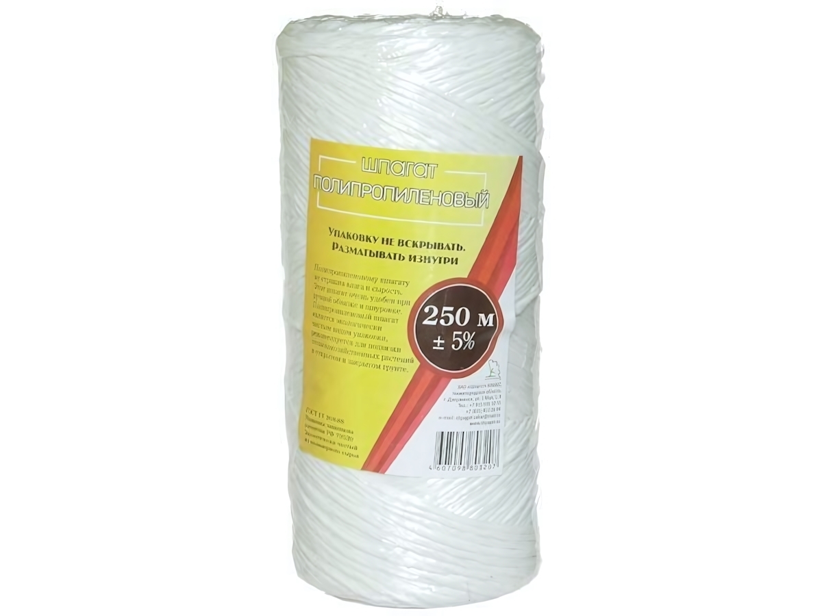 Полипропиленовый шпагат длиной 250 метров станет незаменимым решением для любых хозяйственных задач. Прочный материал и удобная катушка гарантируют комфортное использование.