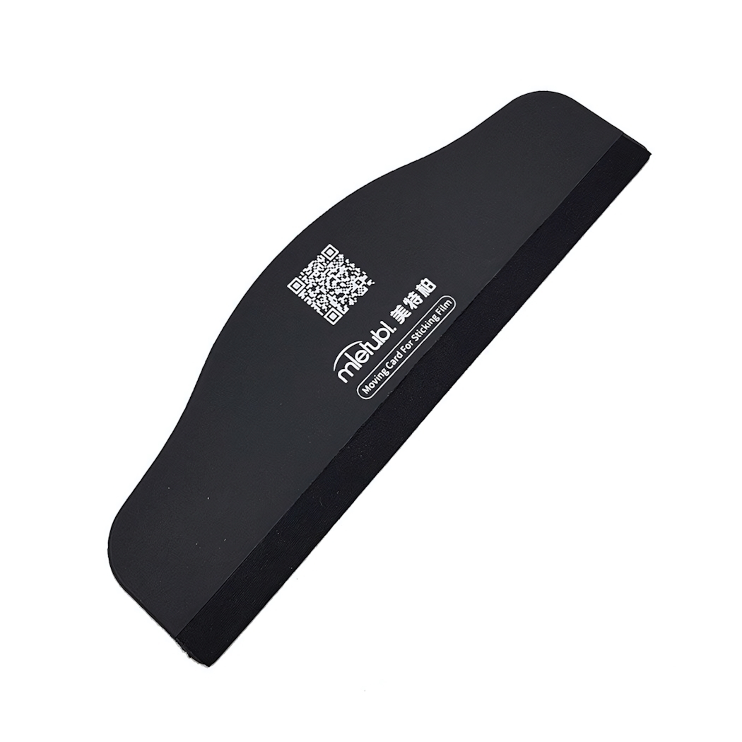 Шпатель имеет черный цвет и компактные размеры, что позволяет легко хранить его и брать с собой. На верхней части инструмента расположена текстовая информация и QR-код, что добавляет функциональности. Этот шпатель станет незаменимым инструментом для всех, кто работает с пленками и наклейками.