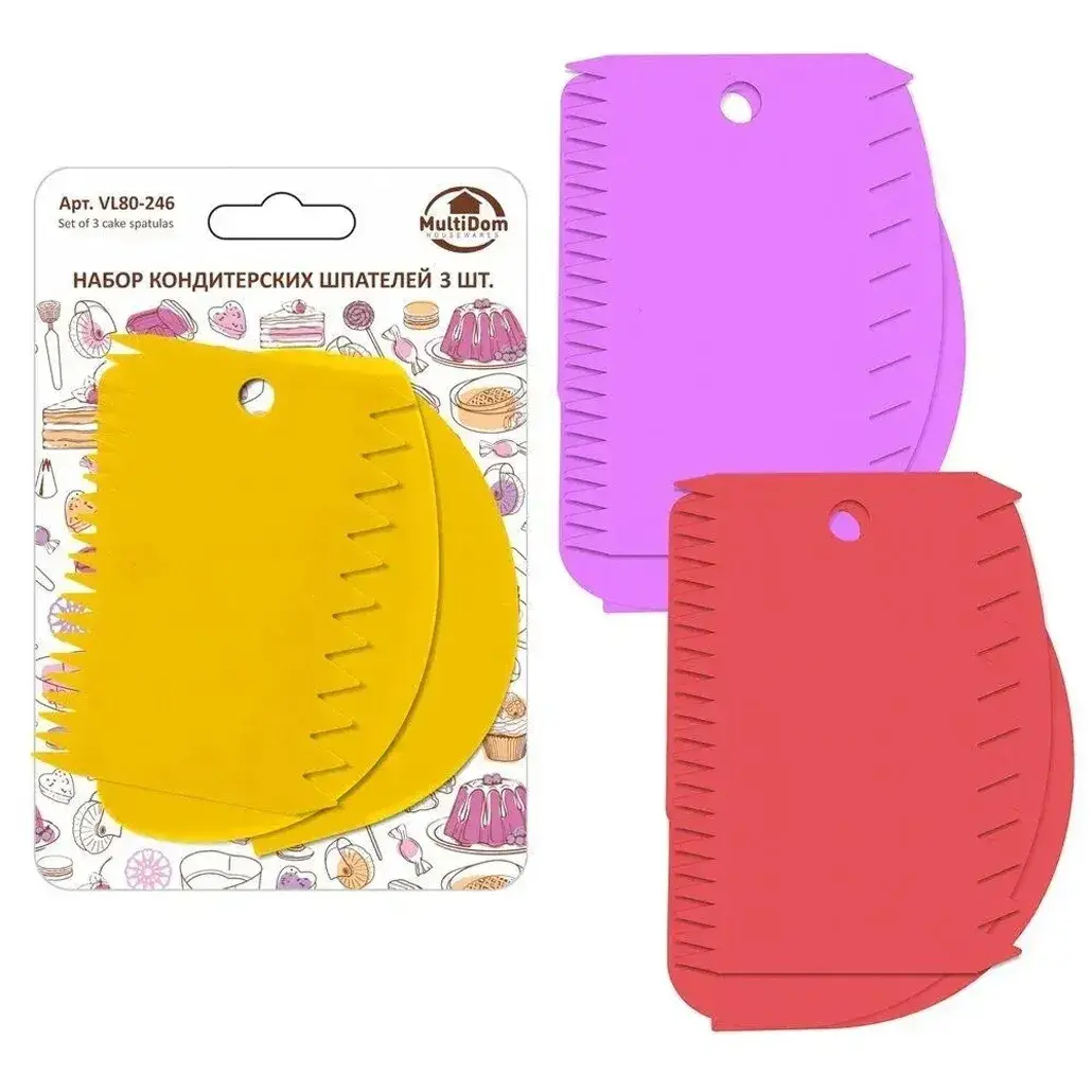 Шпатель кондитерский MultiDom, набор из 3 штук, размеры 10.5x7.5/12x8/12x8.5 см, 3 цвета