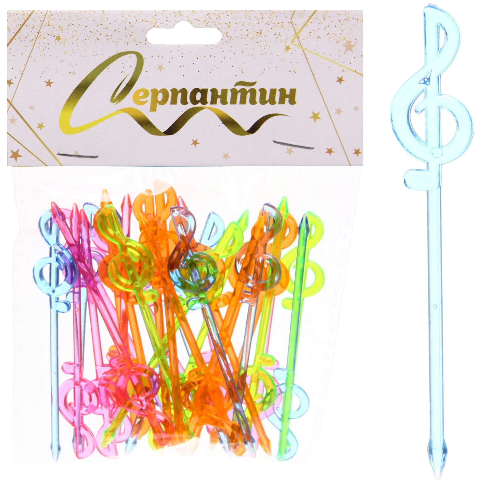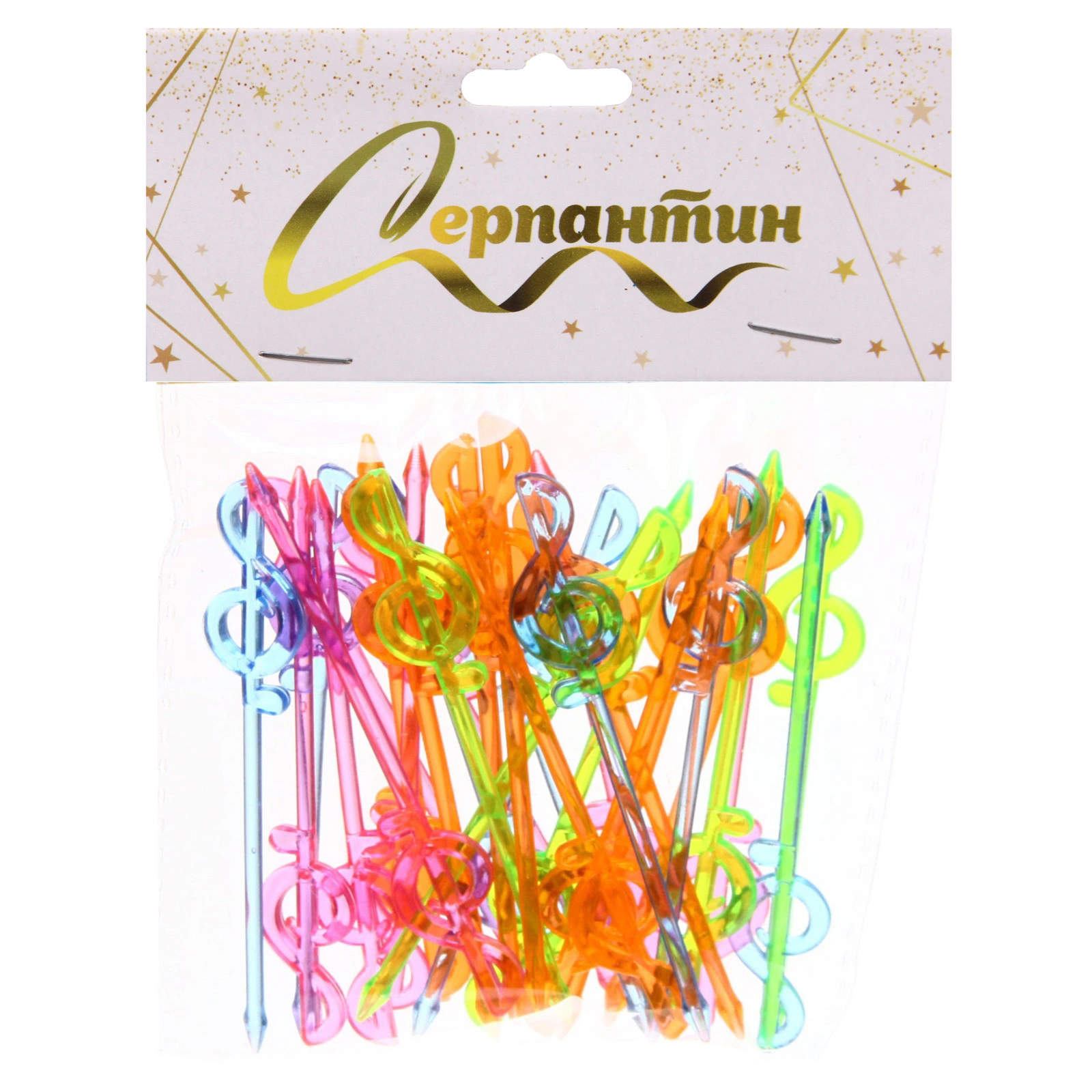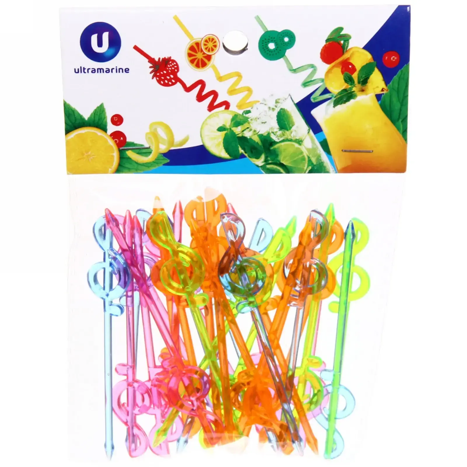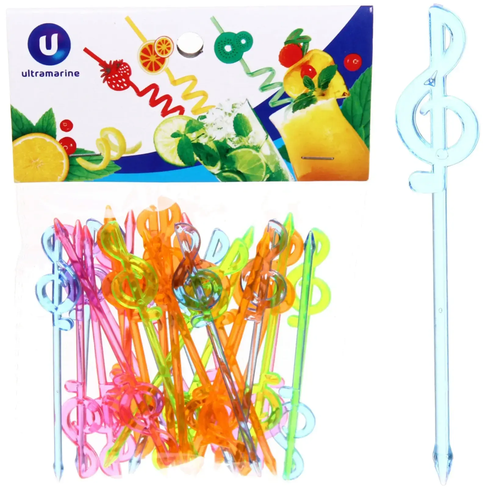 Шпажки декоративные 'Скрипичный ключ' 30шт, пластиковые, длина 10-15см, яркие цвета
