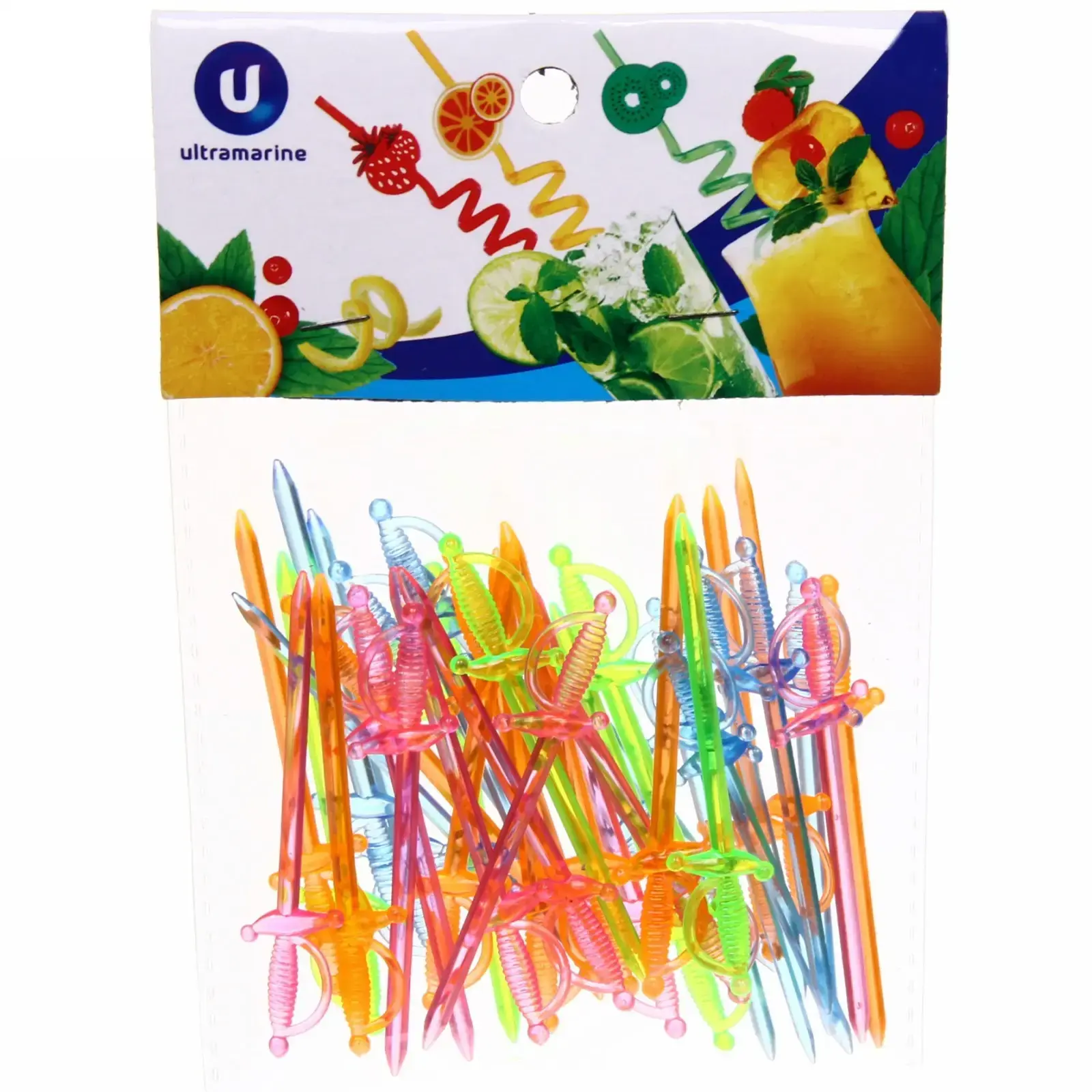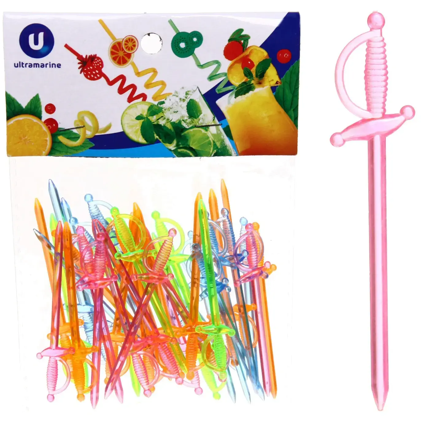 Многоразовые пластиковые шпажки экономят ваши средства и ресурсы. Прочная конструкция обеспечивает удобство использования, а оригинальная форма в виде мечей делает их не только функциональным, но и стильным аксессуаром для сервировки.