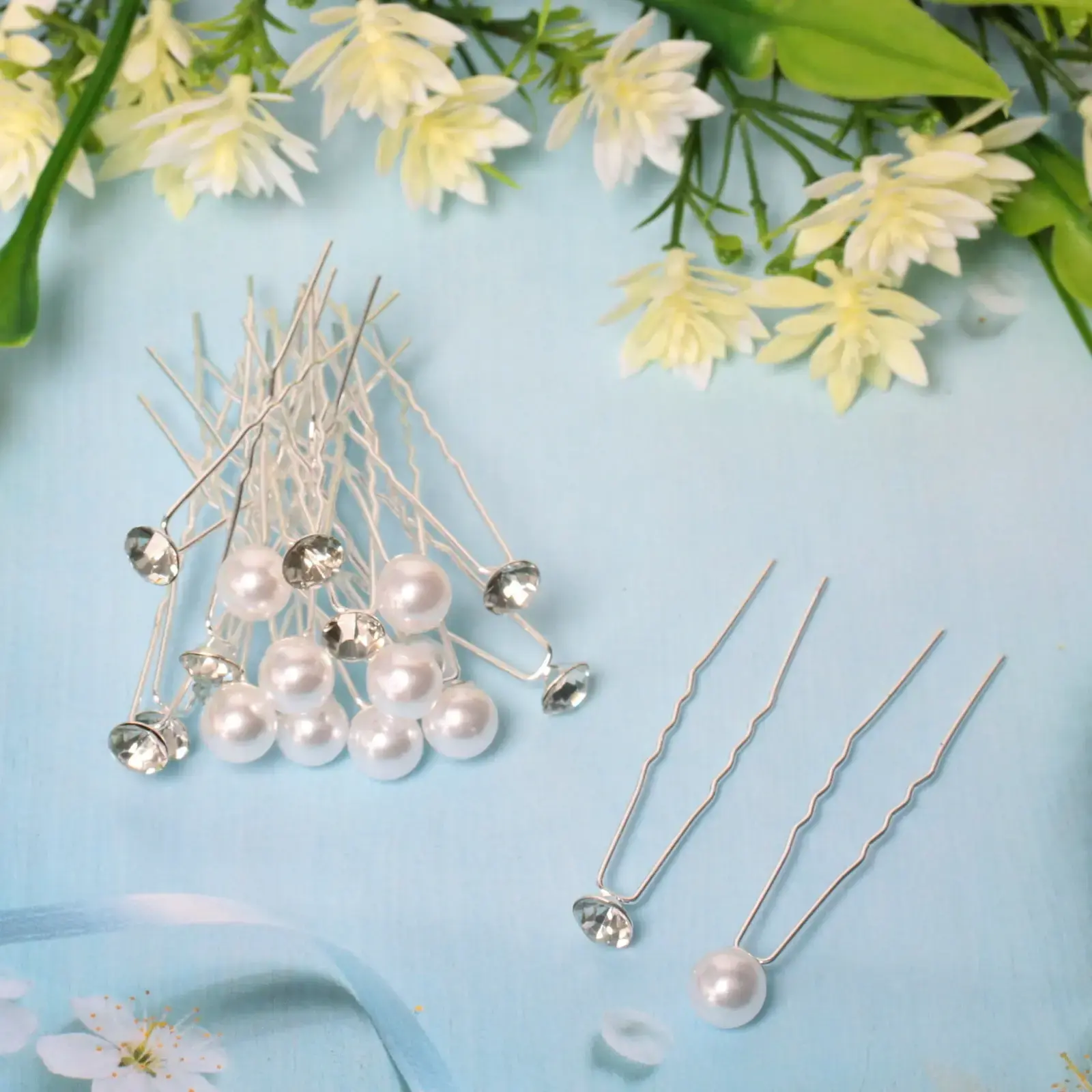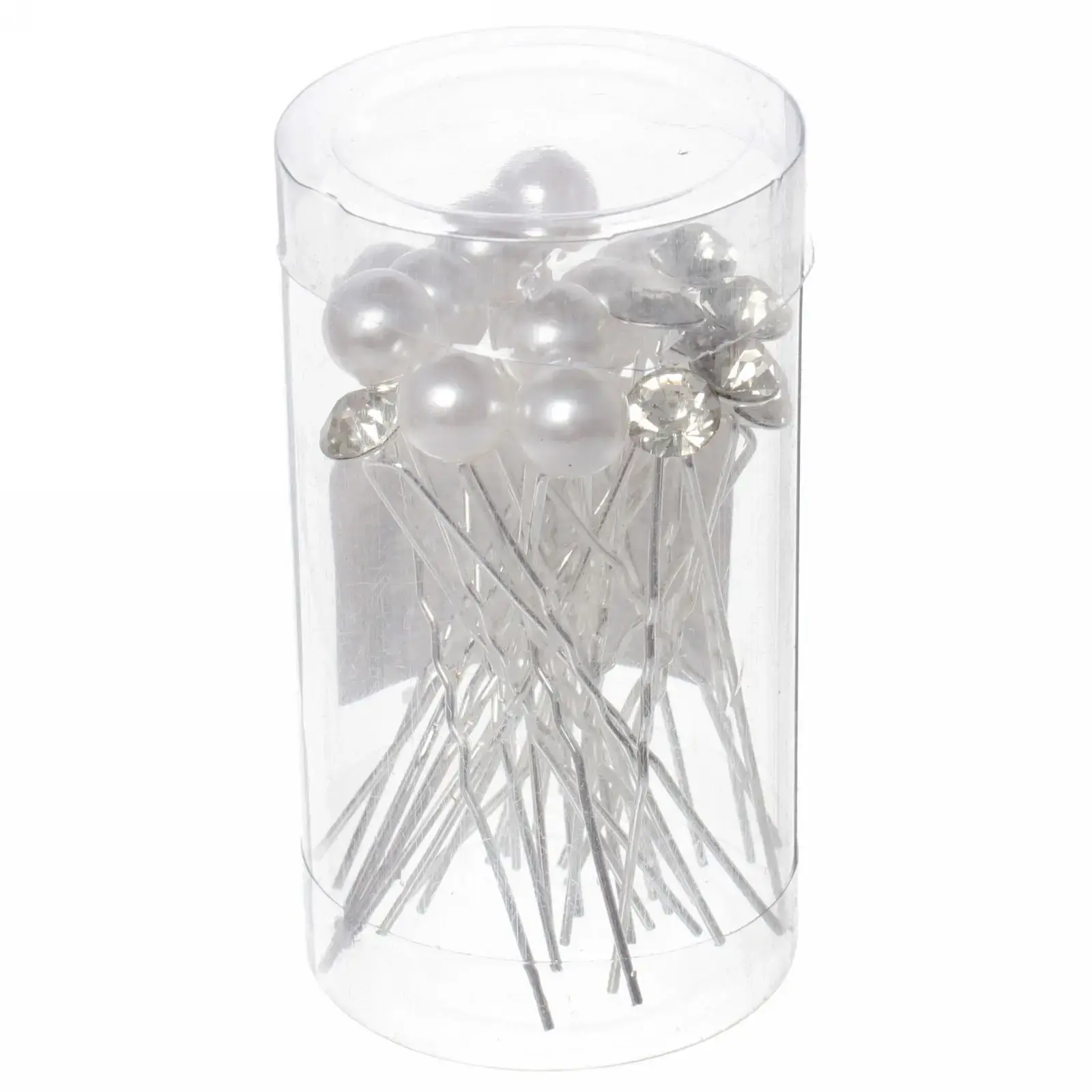 Шпильки имеют диаметр 0.5 см и представлены в серебристом цвете с белыми и прозрачными декоративными элементами. Они компактны и легки, что делает их удобными для хранения и транспортировки. Упаковка выполнена в форме тубы, что защищает шпильки от повреждений и позволяет легко брать их с собой в поездки.