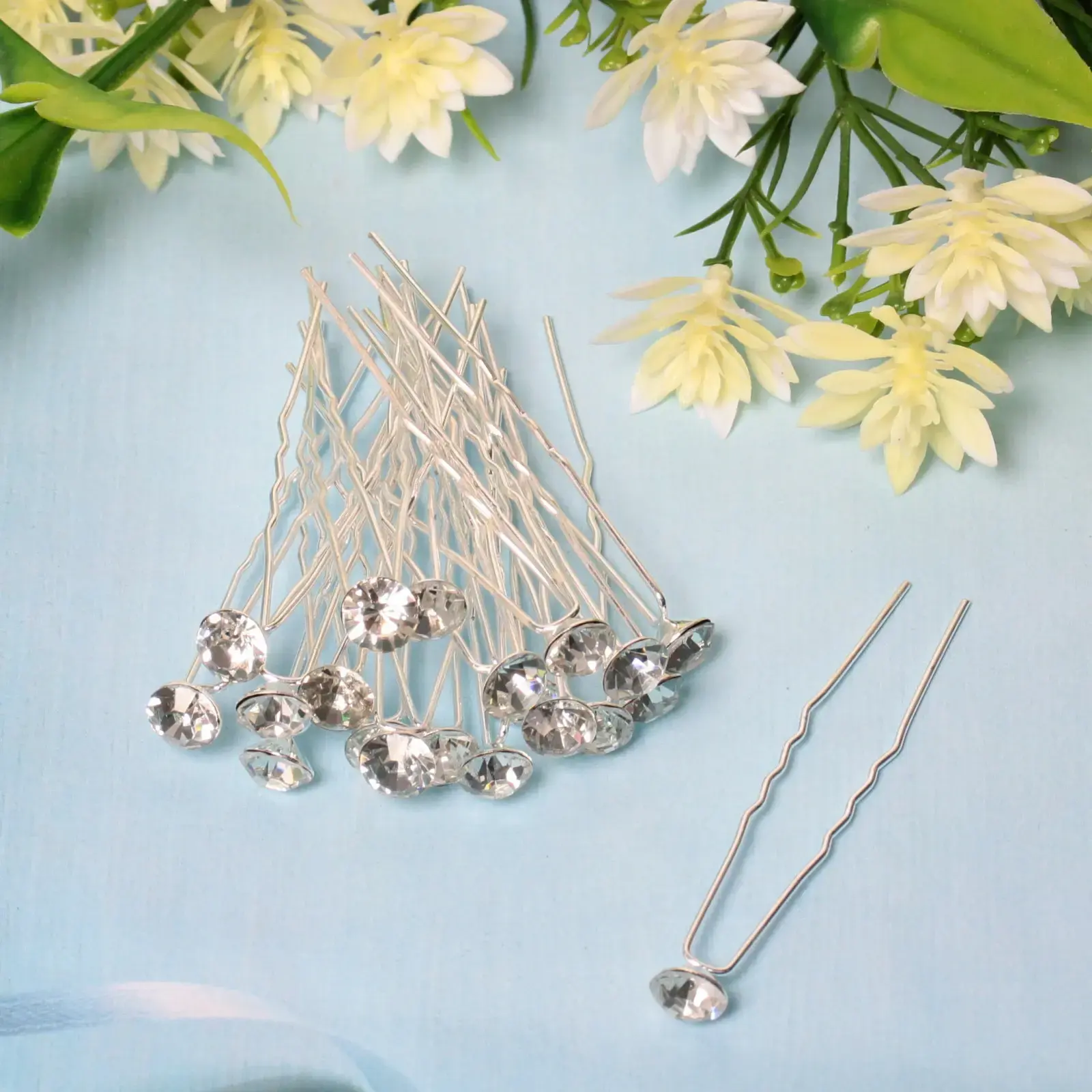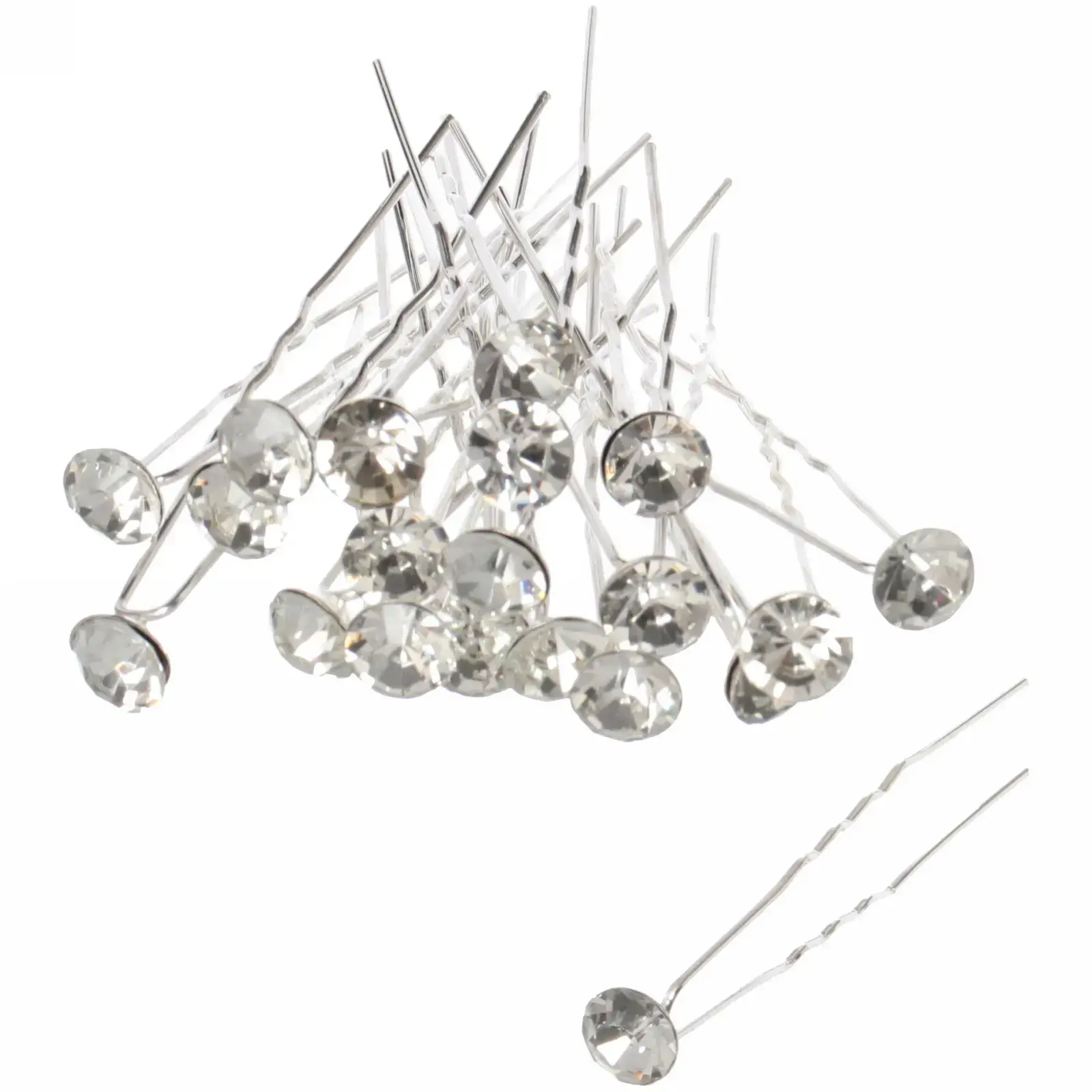 Шпильки для волос «Hair Beauty» с стразами, серебристые, 20шт, d-0.8см, металл/пластик