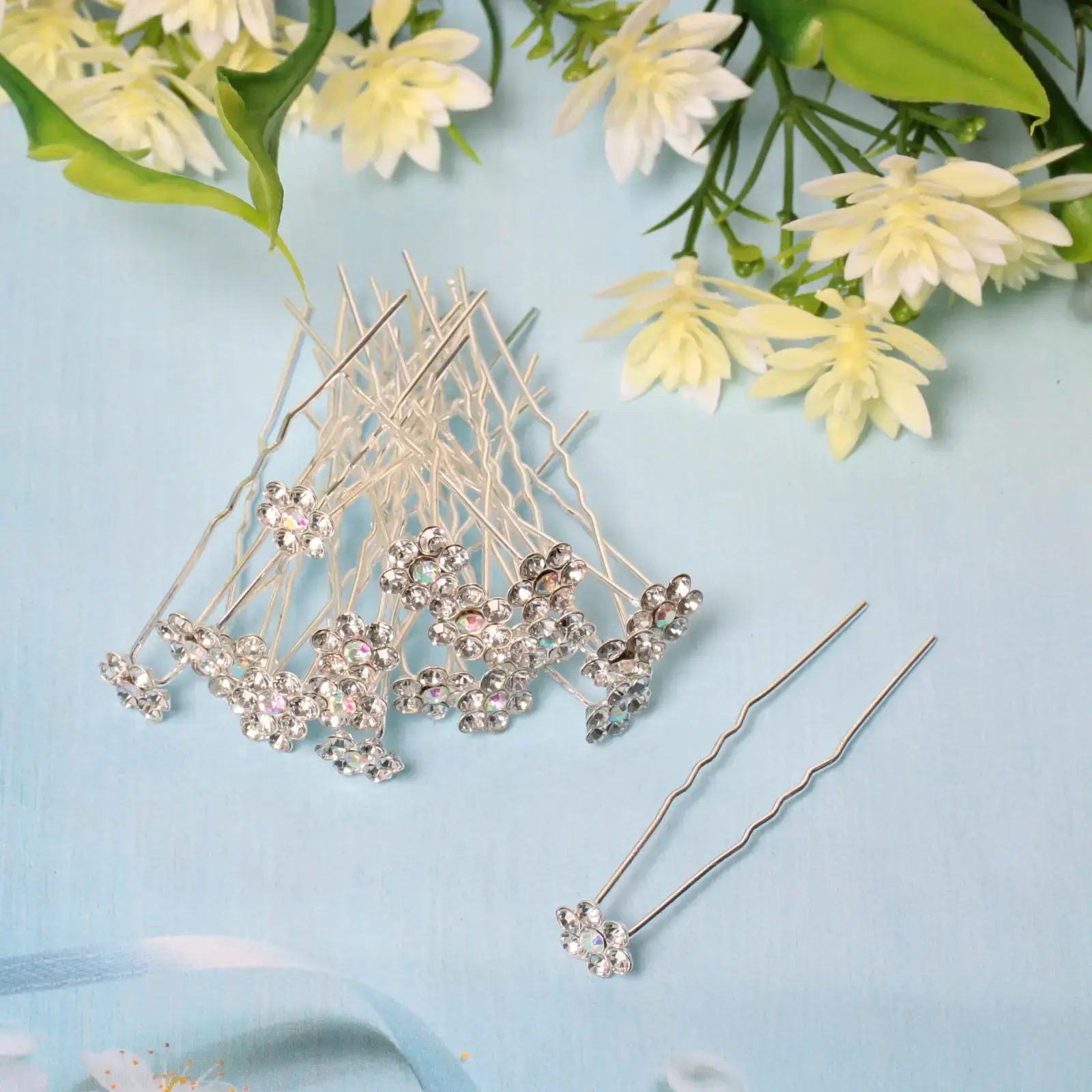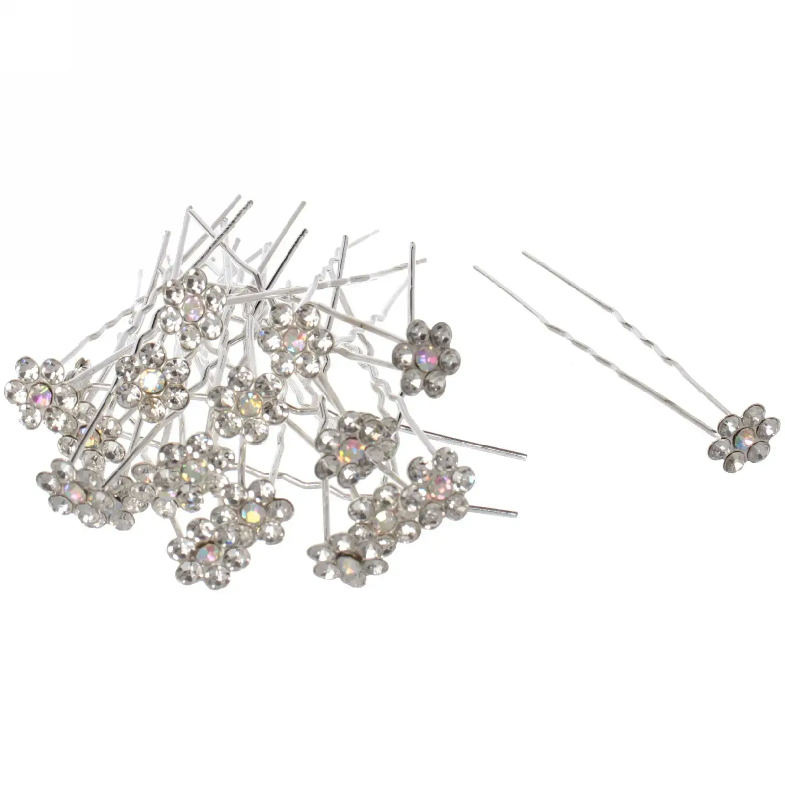 Шпильки для волос «Hair Beauty», 20шт, цветок со стразами, серебристые, d0.8см, надежное крепление