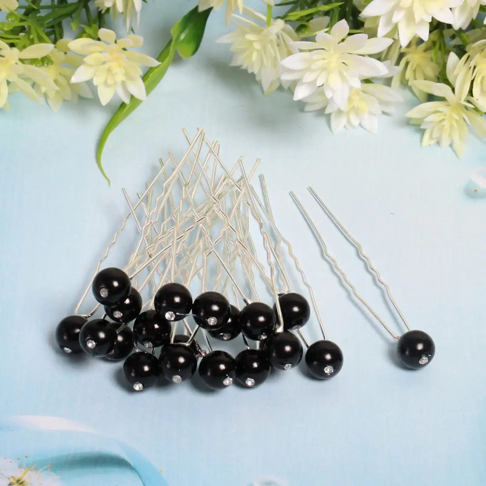 Металлическая основа диаметром 0.8 см обеспечивает надежную фиксацию, а декоративные шарики с кристаллами придают элегантный вид. Подходят для создания повседневных и праздничных причесок.