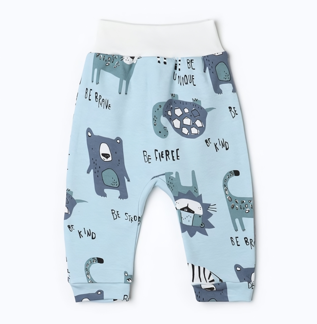 Штанишки детские с принтом животных, голубые, 68 см, 100% хлопок, эластичный пояс