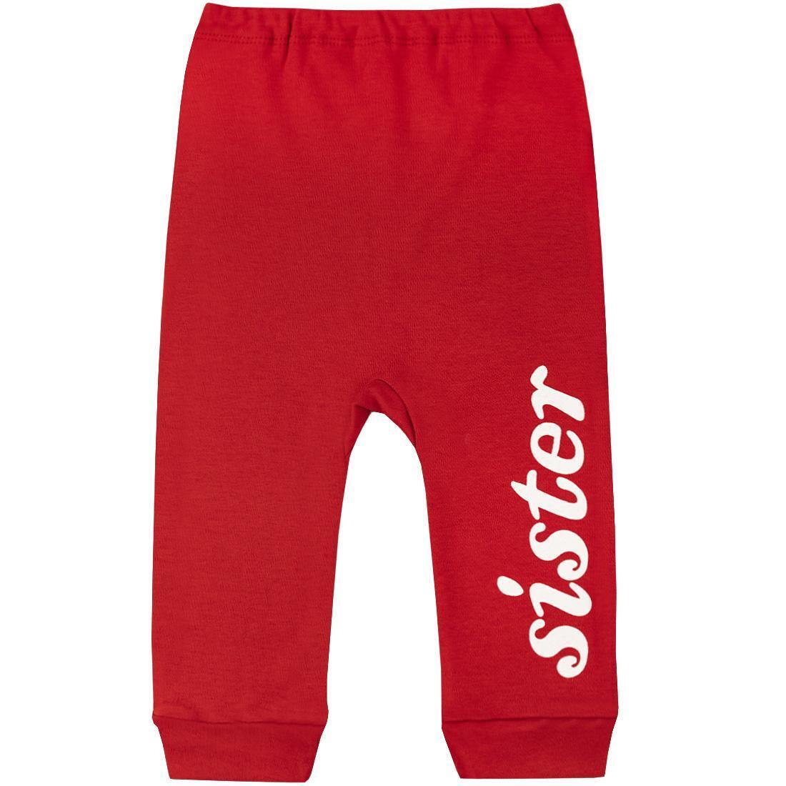 Штаны для девочки "Юлла" р.80, красные, хлопок 100%, с манжетами и надписью "sister"