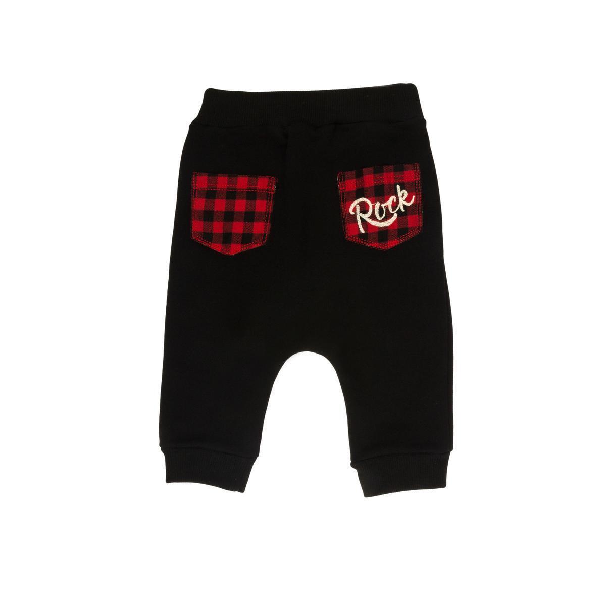 Штанишки детские "Гранж", р.48-74, хлопок, черные с красными карманами