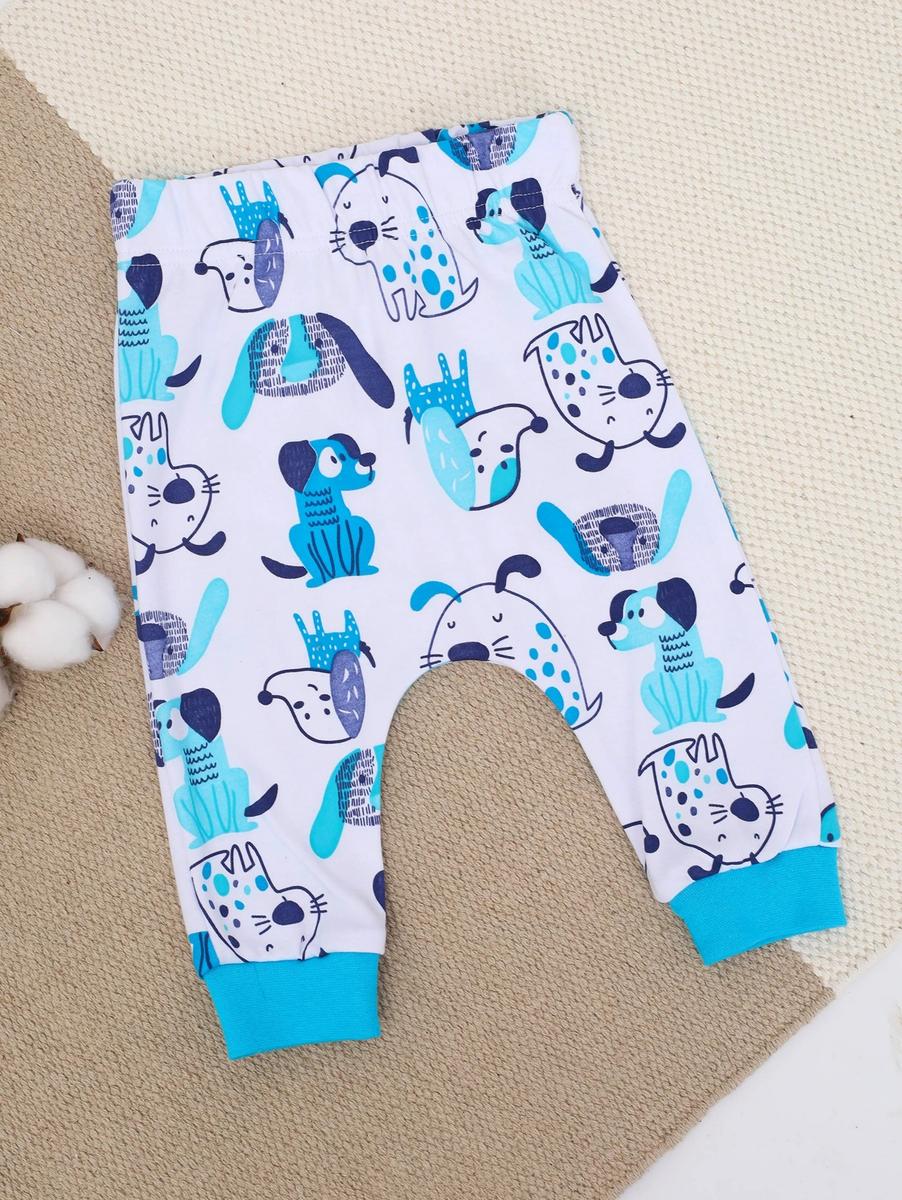 Штанишки выполнены из качественного интерлока (100% хлопок), который хорошо пропускает воздух и сохраняет форму после многократных стирок. Яркий принт с изображением забавных собачек поднимет настроение вашему малышу.
