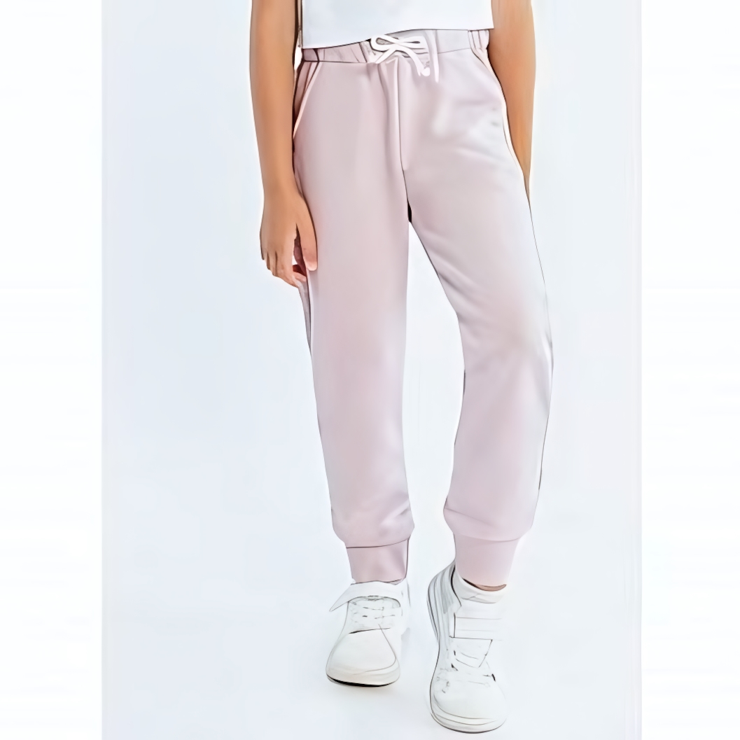 Штаны для девочек 'Юлла' из футера, размер 104-110, светло-розовые, с резинкой и манжетами