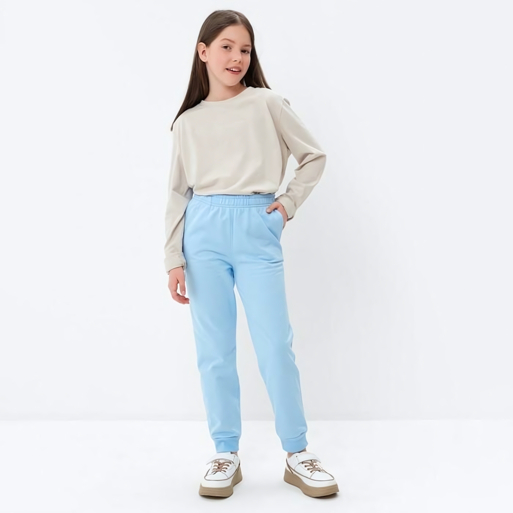 Откройте для себя идеальные штаны для девочек, которые обеспечивают комфорт и стиль в любое время года. Эти голубые штаны из футера с начёсом идеально подходят для повседневной носки, их удобно надевать и носить в межсезонье. Кроме того, 100% хлопковый состав позволяет коже дышать, что особенно важно для активных детей.