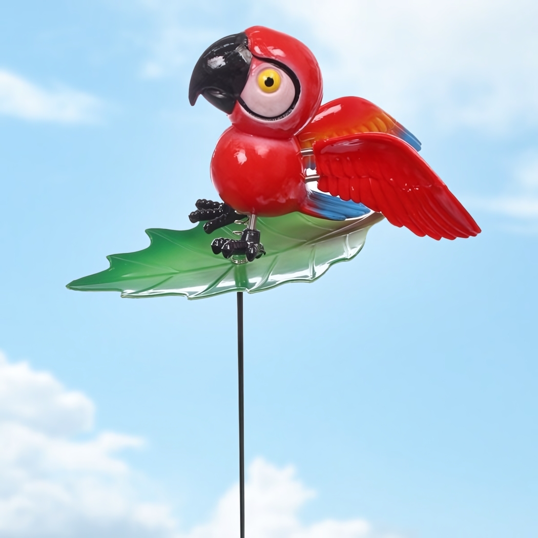 Фигурка попугая с выразительным дизайном создаст праздничное настроение и оживит ландшафт. Устойчивая конструкция с металлическим креплением гарантирует надежную установку даже при ветре.