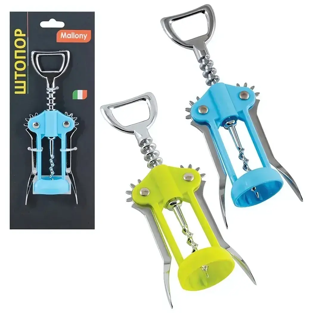 Сочетание металлического каркаса и ударопрочного пластика делает штопор долговечным. Зубчатая головка надёжно фиксирует пробку, предотвращая соскальзывание. Отгружается один товар — цвет корпуса (жёлтый или голубой) определяется случайным образом.