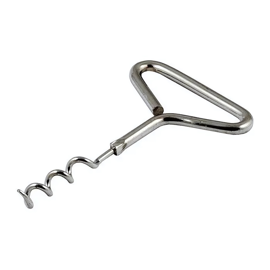 Металлический штопор с эргономичным треугольным дизайном обеспечивает комфортное открывание бутылок без усилий. Удобная ручка с антискользящим покрытием идеально ложится в руку, а прочная стальная спираль легко проникает в пробку.