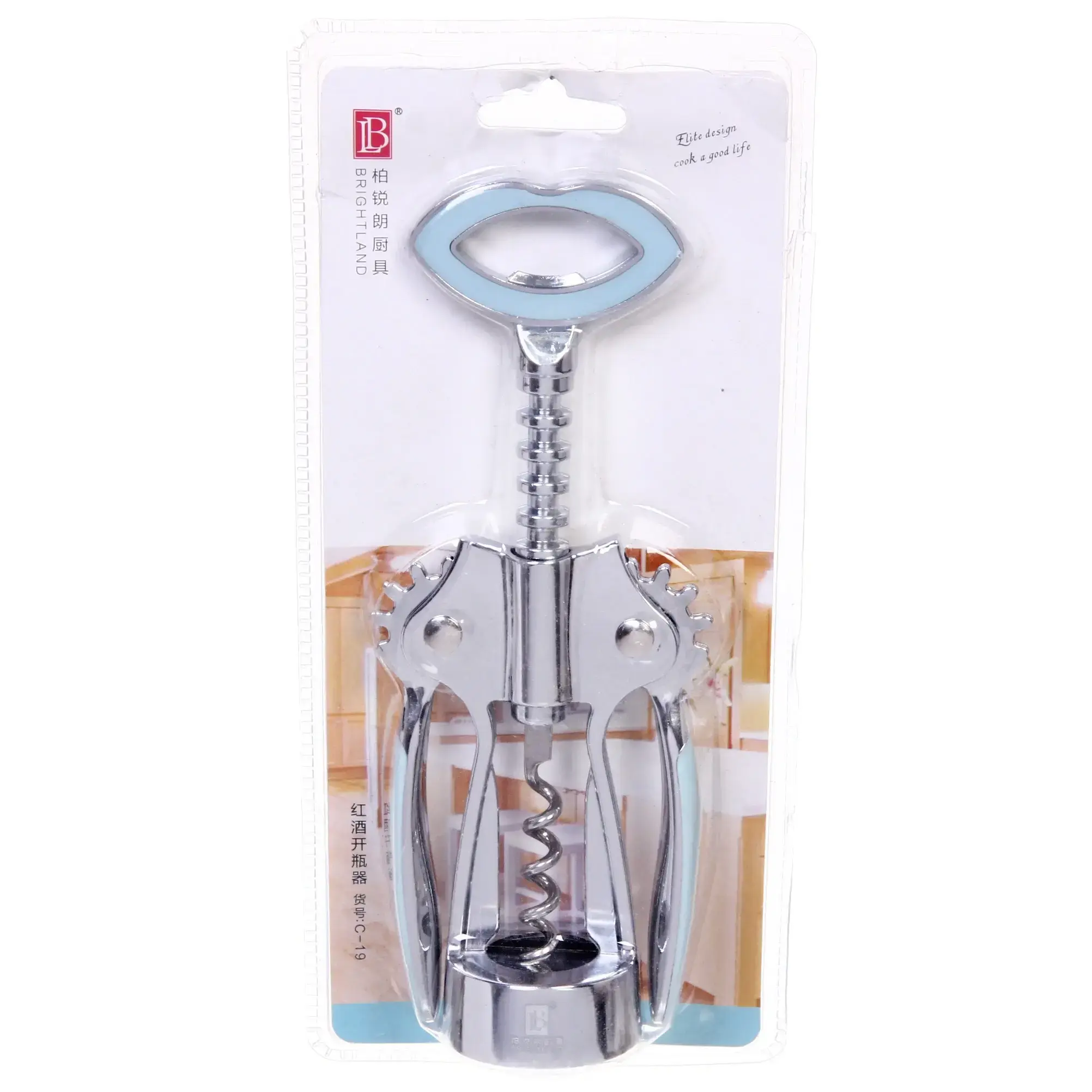 Штопор «Macarons» металлический с открывалкой, голубая ручка, хромированное покрытие