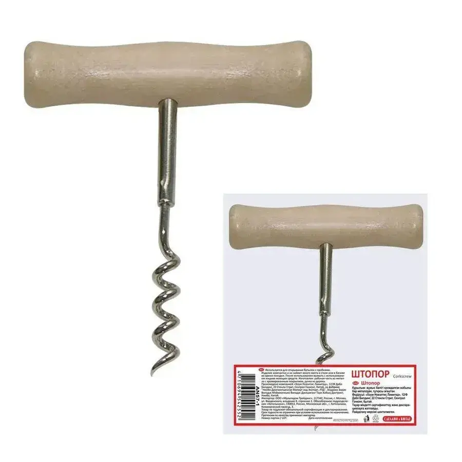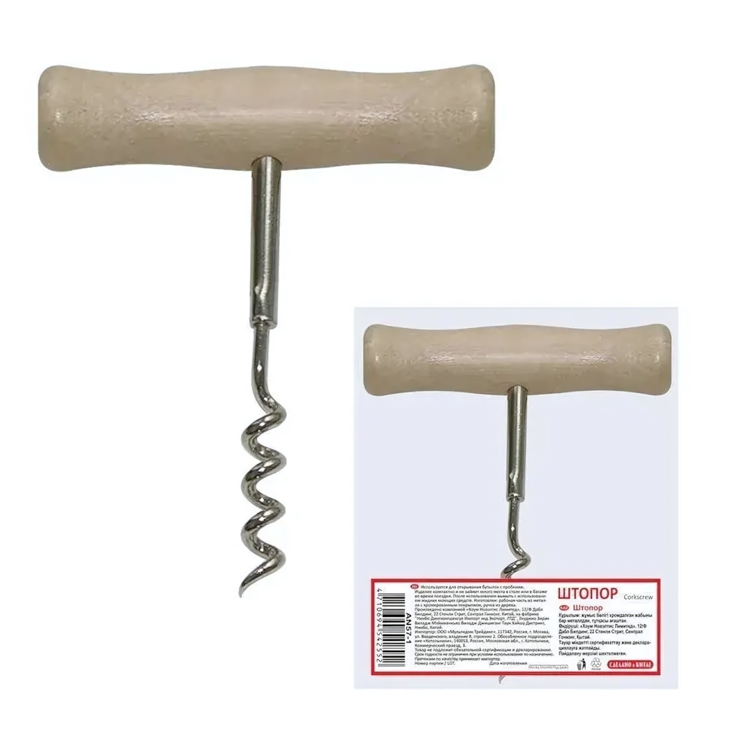 Идеальный помощник для открывания винных бутылок, сочетающий классический дизайн и современное качество. Деревянная ручка обеспечивает комфортный хват, а прочная металлическая спираль гарантирует надежное извлечение пробки без повреждений.