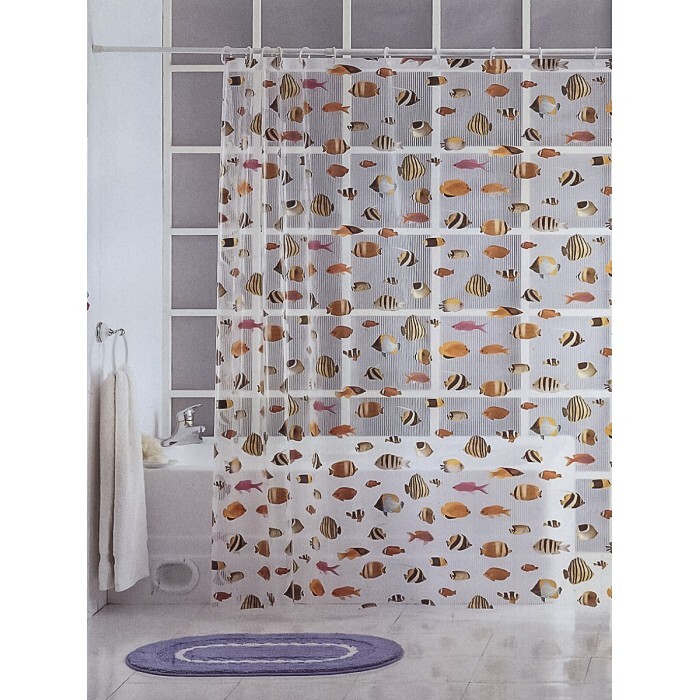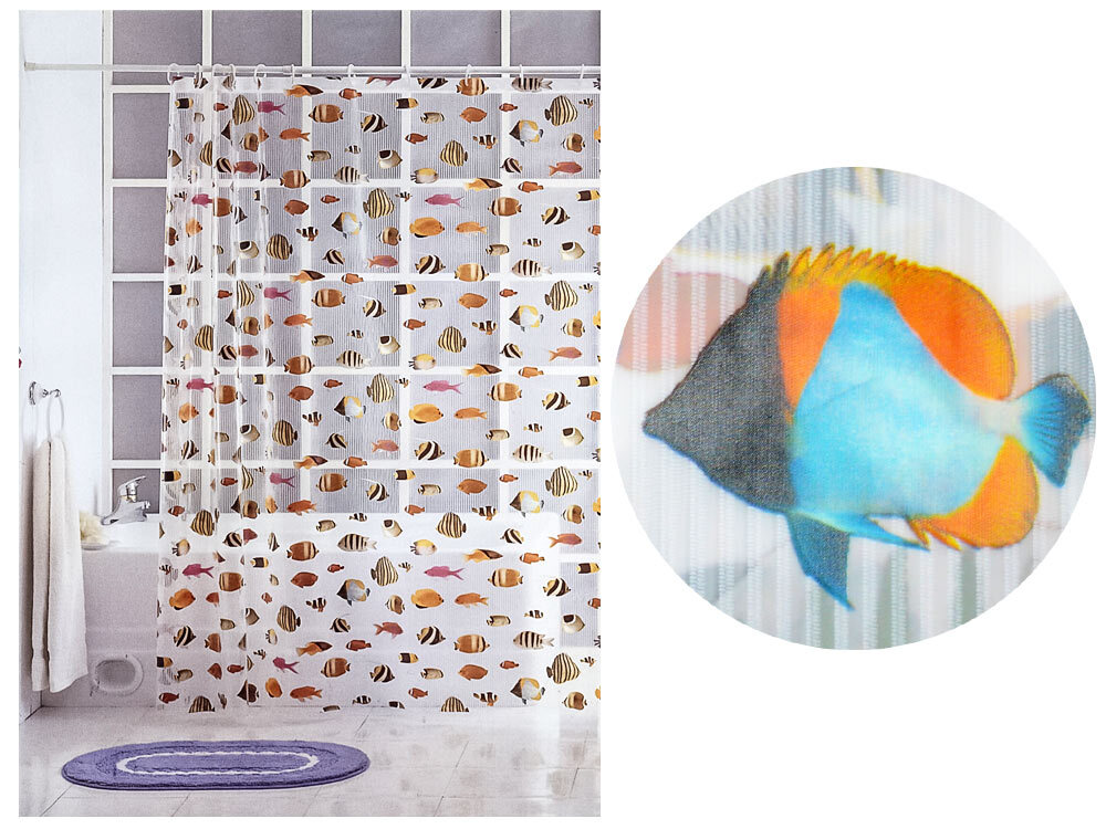Комплект поставки: одна штора, цвет рыб и участков дизайна может отличаться (отгружается один товар, расцветка в ассортименте). Для очистки достаточно протереть влажной губкой или промыть под струёй воды — занавеска быстро сохнет и сохраняет форму.