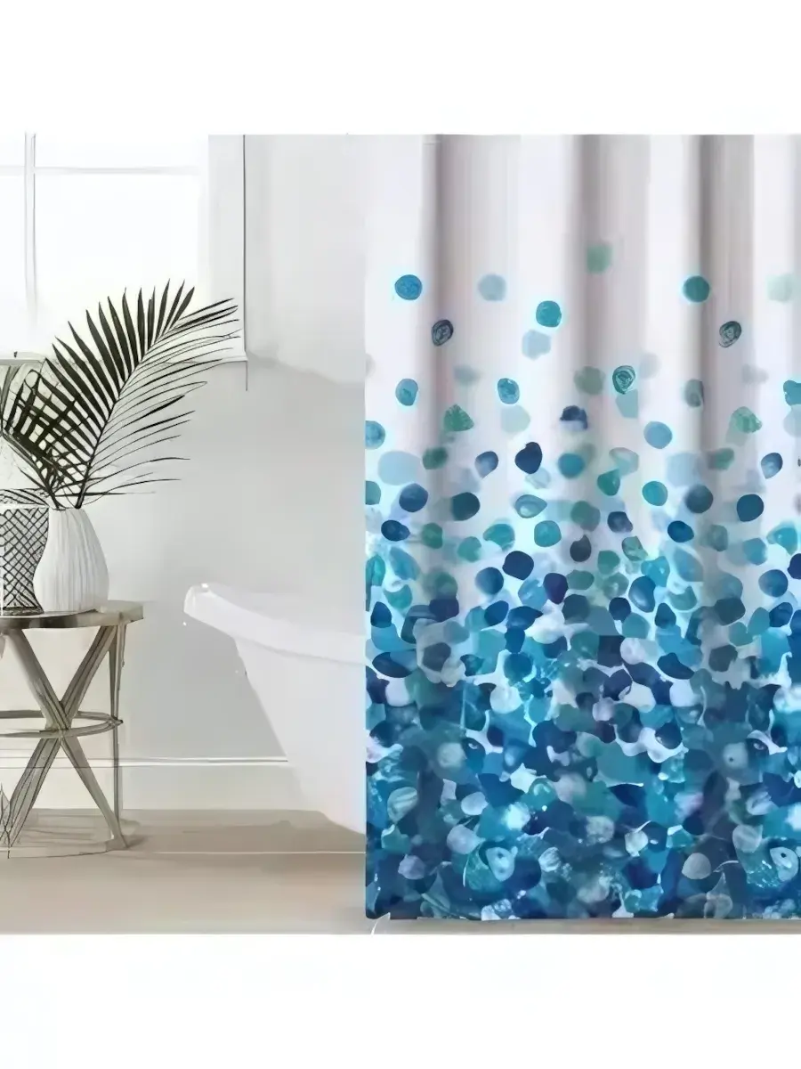 Плотный полиэстер обеспечивает долговечность материала, а стильный дизайн с рисунком 'Листопад' добавит элегантности вашей ванной комнате. Синие и голубые круги создают спокойную атмосферу, подходящую для любого интерьера.