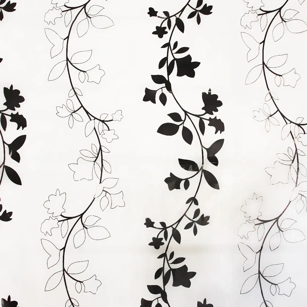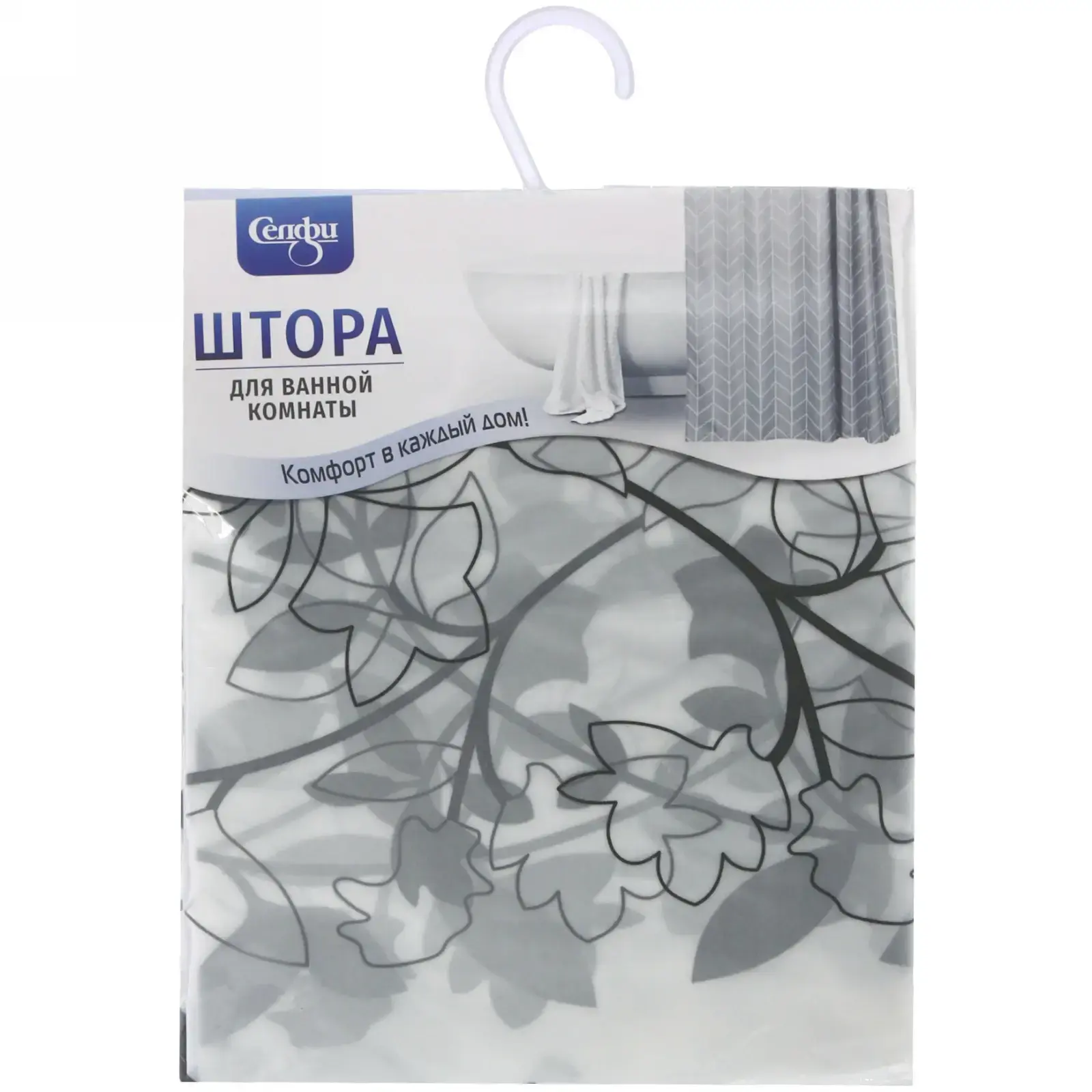 Размер полотна: 180×180 см. Материал: экологичный ПВХ без запаха. Цветовая гамма: белый фон с графичными черными силуэтами листьев. Упаковка с подвесным крючком для удобного хранения в магазине. Вес в упаковке: 450 г.