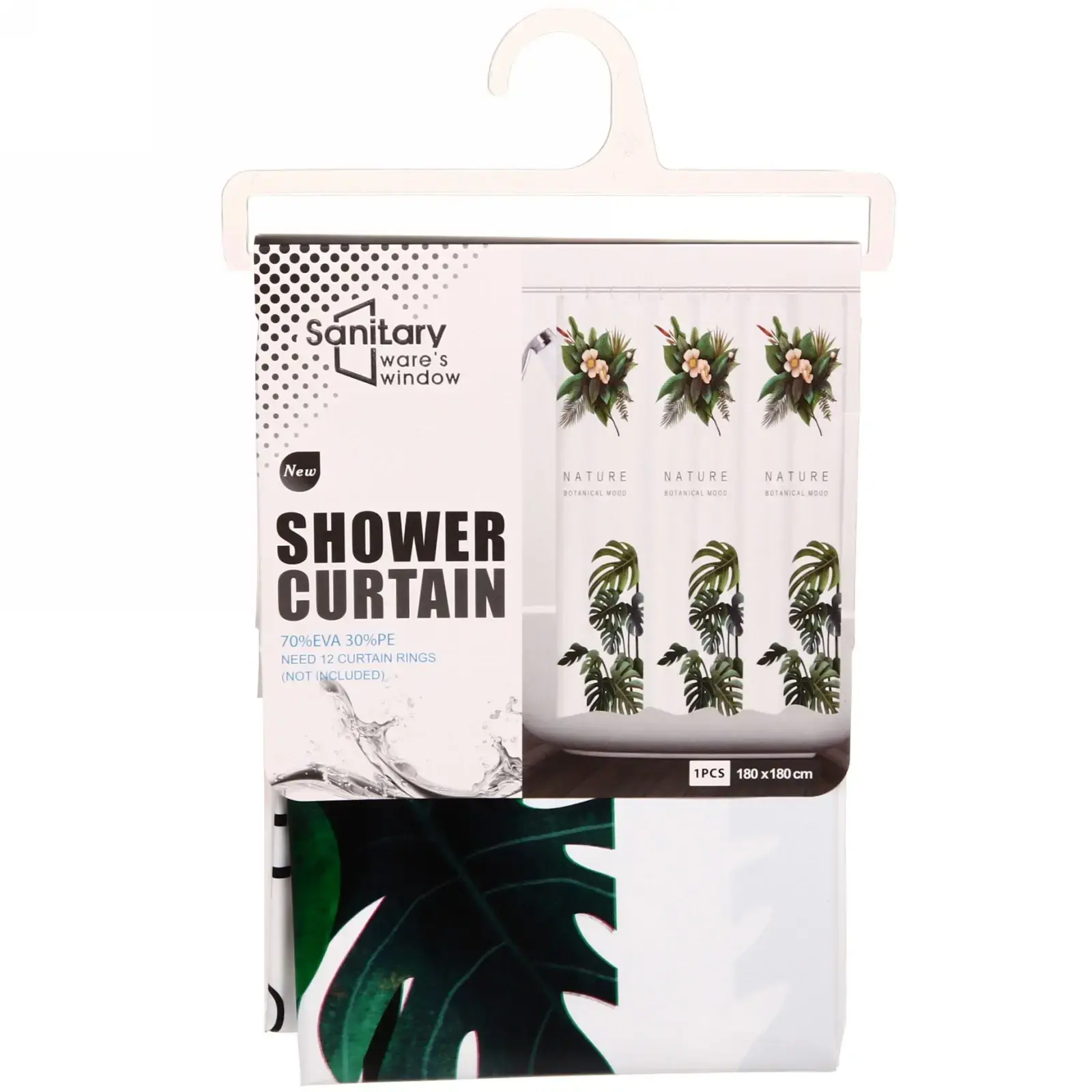 Штора для ванной 'Кактус', EVA, 180х180см, белая с ботаническим принтом