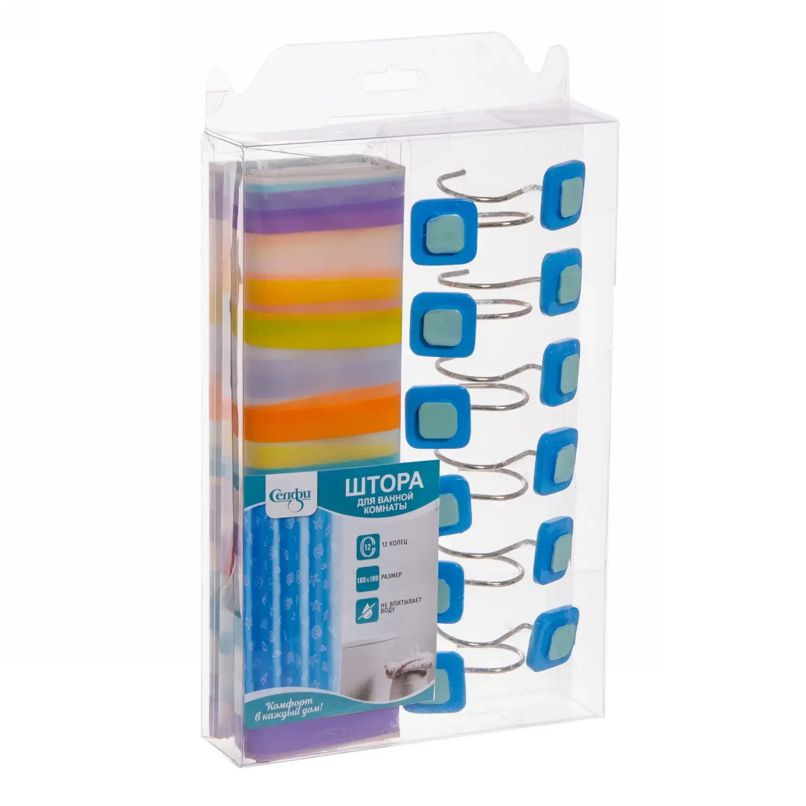 Размеры занавески составляют 180 см на 180 см, что делает ее подходящей для большинства ванных комнат. Прозрачная упаковка позволяет увидеть содержимое и оценить качество товара перед покупкой. Не упустите возможность сделать вашу ванную комнату более комфортной и стильной с помощью этой практичной и красивой шторы!