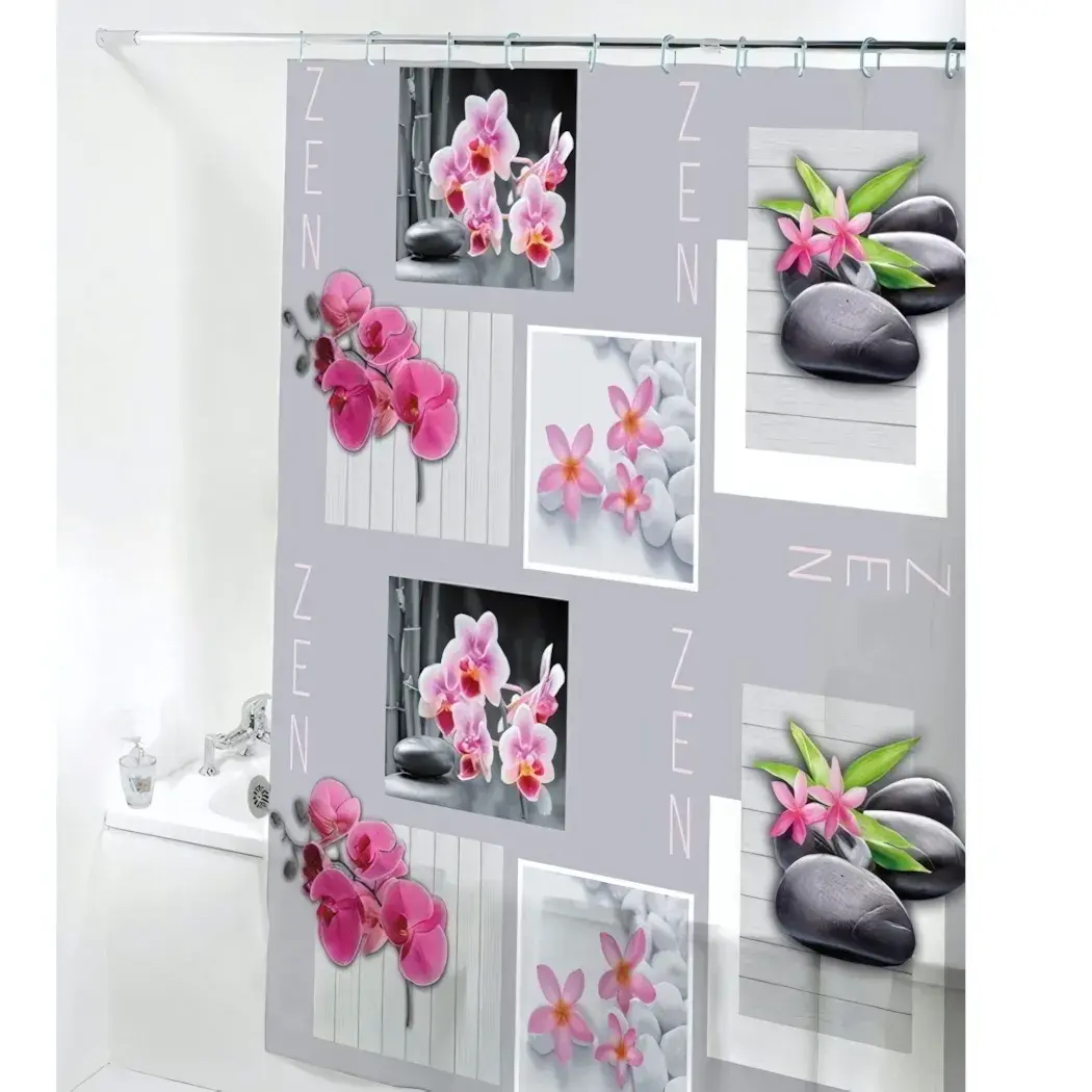 Выбирая эту штору, вы получаете не только защиту от воды, но и стильный дизайн. Яркие изображения орхидей и камней на сером фоне придают ванной комнате свежий и современный вид. Штора легко очищается, что позволяет поддерживать её в идеальном состоянии без лишних усилий.