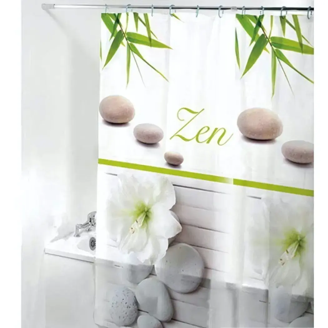 Штора легко устанавливается благодаря 12 пластиковым кольцам, которые идут в комплекте. Она подходит для большинства стандартных карнизов и может использоваться как в домашних условиях, так и в гостиницах. Дизайн с изображениями камней, цветков и зелёных веток бамбука создает атмосферу расслабления и умиротворения, что делает её идеальным выбором для любителей стиля 'Zen'.