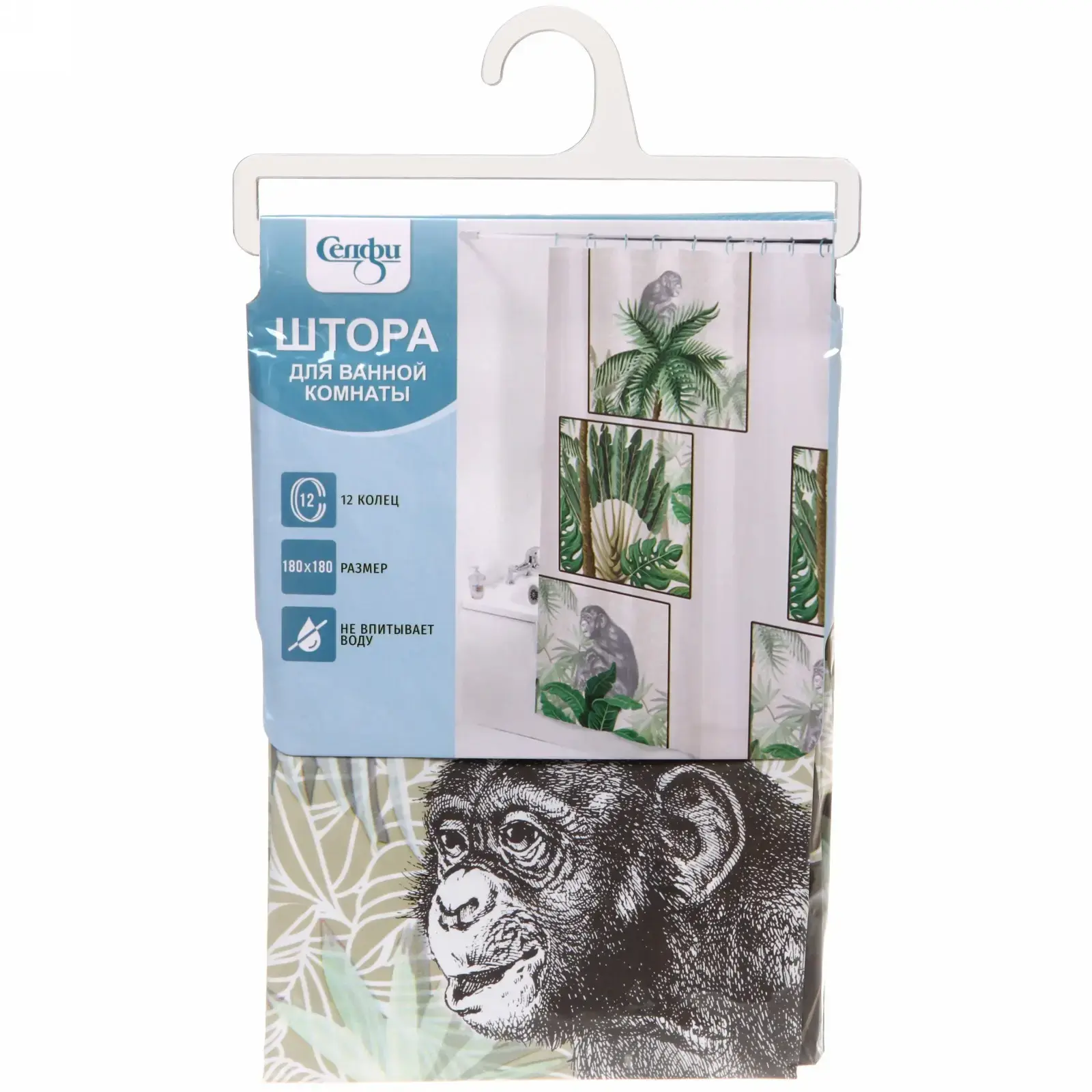 Штора легко устанавливается с помощью 12 пластиковых колец, которые входят в комплект. Это делает процесс монтажа быстрым и простым, даже для тех, кто не имеет опыта в установке. Штора подходит для любого стиля ванной комнаты, будь то современный, классический или экзотический. Яркий принт с изображением тропических растений и обезьяны добавляет нотку свежести и оригинальности.