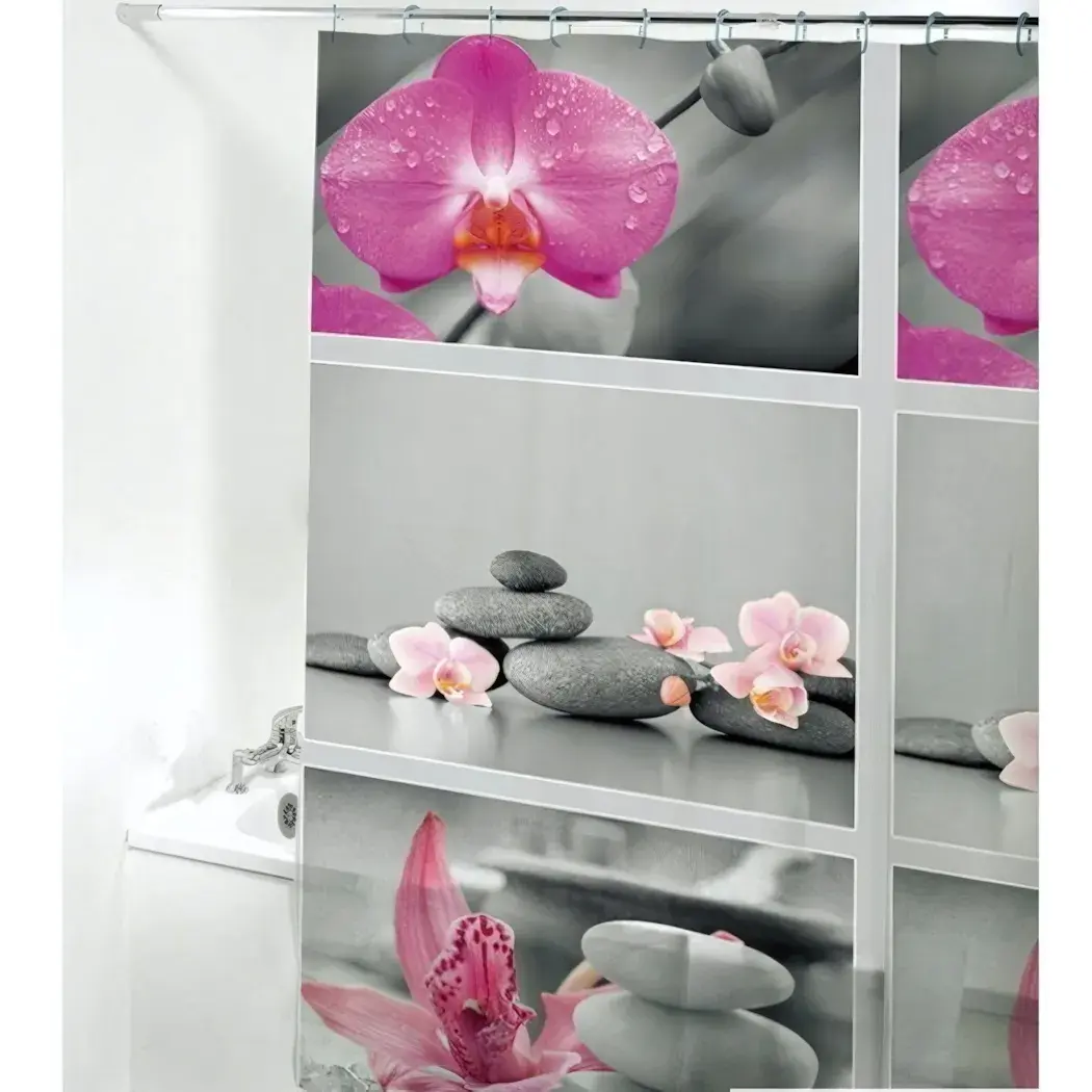 Выбирая штору EVA, вы получаете не только практичное решение для защиты от воды, но и стильный элемент декора. Яркие цвета и оригинальный принт с орхидеями и камнями создают атмосферу тропического рая, что особенно приятно в повседневной жизни. Штора подходит для использования в любых ванных комнатах, будь то современный или классический стиль.