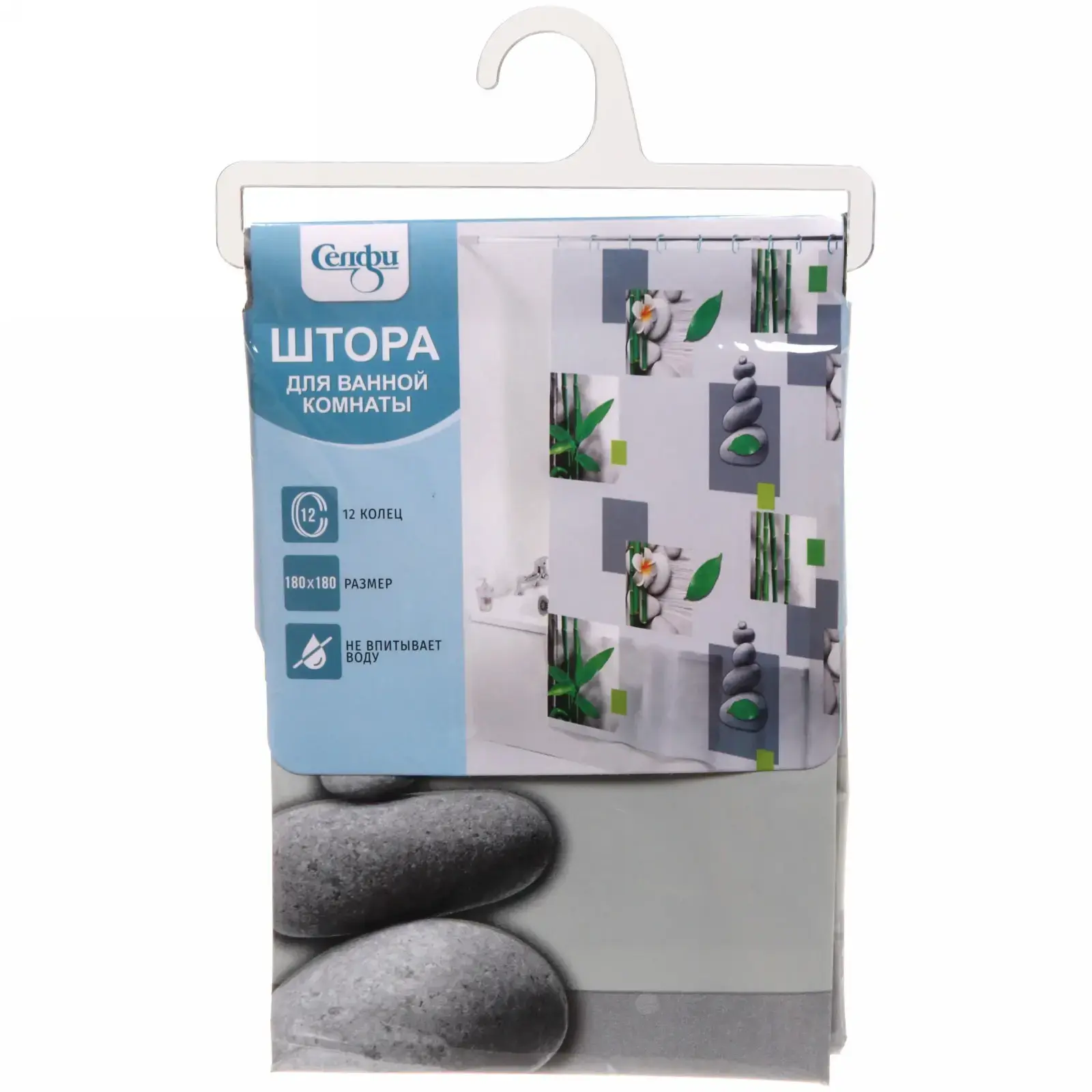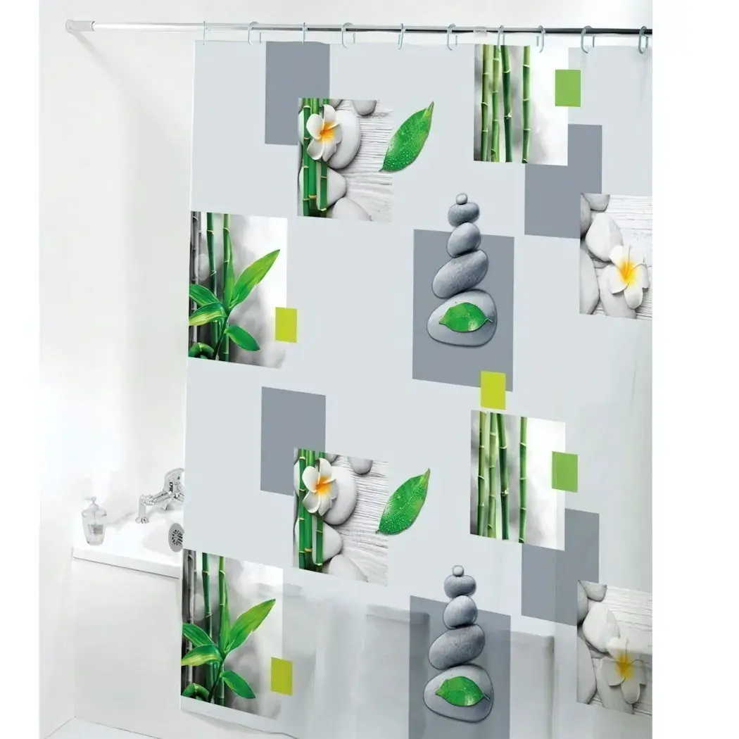 Штора для ванной EVA 180x180 см — это идеальное решение для создания уюта и стиля в вашей ванной комнате. Благодаря водоотталкивающему материалу, вы можете забыть о проблемах с попаданием воды на пол, что обеспечивает безопасность и комфорт. Декоративный принт с изображением камней и зелени добавляет нотку природы и свежести в интерьер.