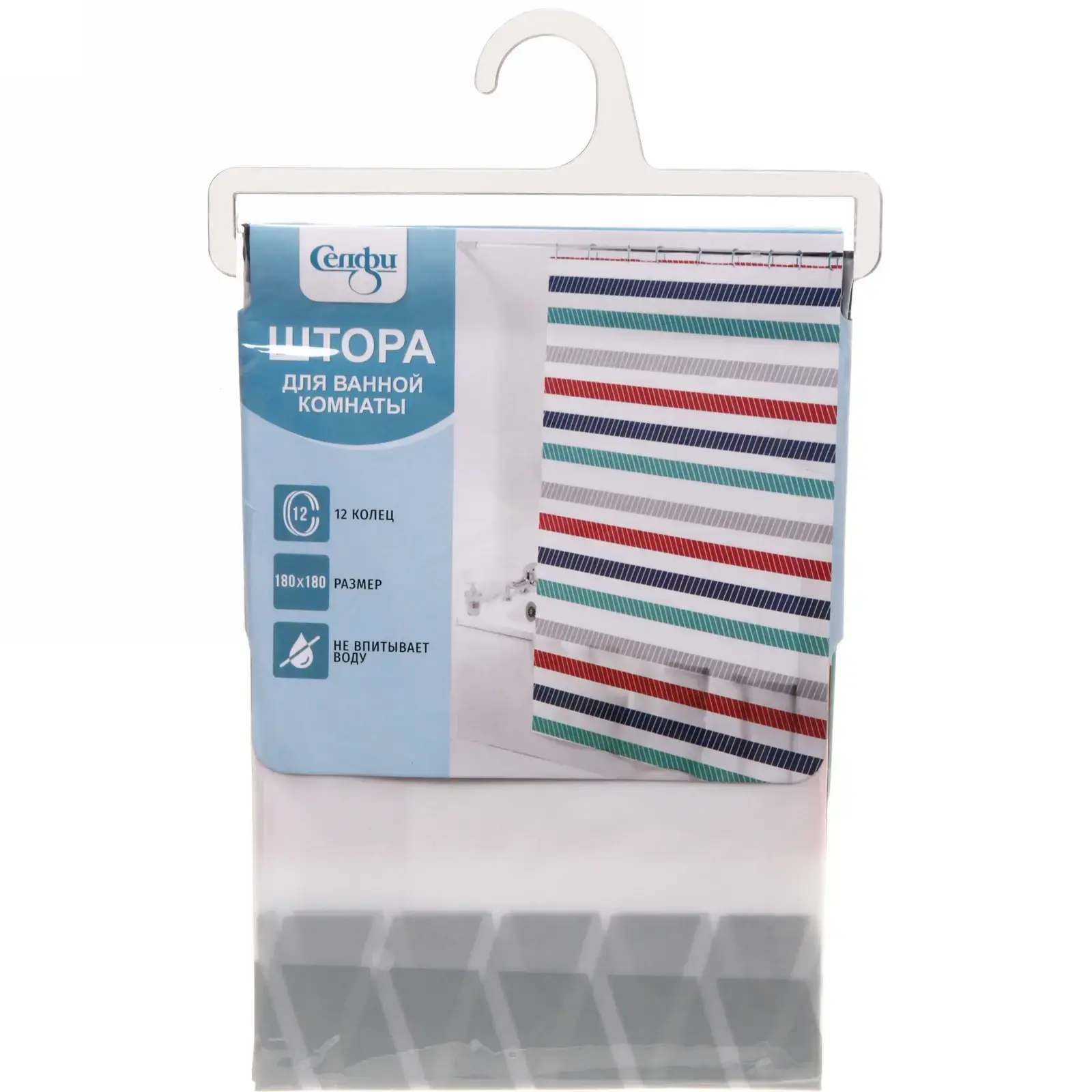 Штора легко устанавливается с помощью 12 металлических колец, которые входят в комплект. Она подходит для большинства стандартных душевых кабин и ванн, обеспечивая надежную защиту от воды. Изготовленная из EVA, штора не впитывает воду, что делает ее идеальным выбором для ежедневного использования.