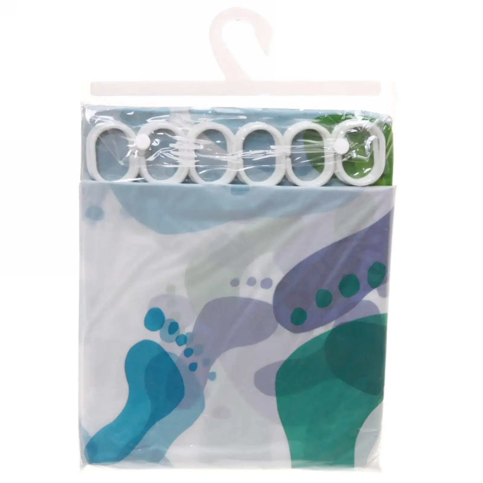 Стильный цветочный узор в сочетании синего, зеленого и белого цветов создает ощущение свежести и чистоты. Размер 180х200 см идеально подходит для стандартных ванных комнат.