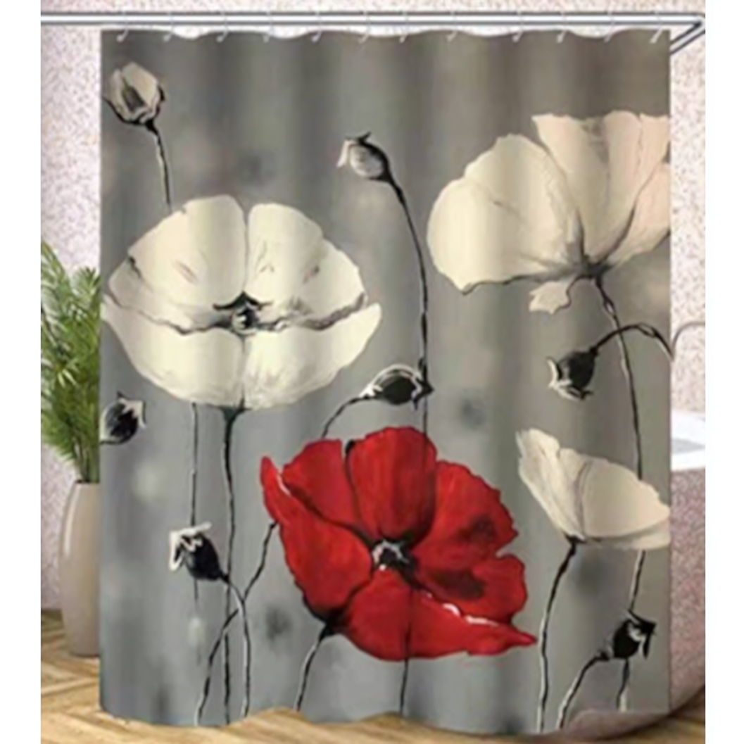 Преобразите интерьер ванной комнаты за считанные минуты с помощью элегантной шторы из коллекции "Маки". Современный фотопринт с изображением нежных цветов на благородном сером фоне добавит пространству изысканности и создаст атмосферу спокойствия. Яркий акцент в виде единственного красного мака среди светлых бутонов делает дизайн оригинальным и запоминающимся, позволяя этой детали идеально вписаться как в классический, так и в современный интерьер.