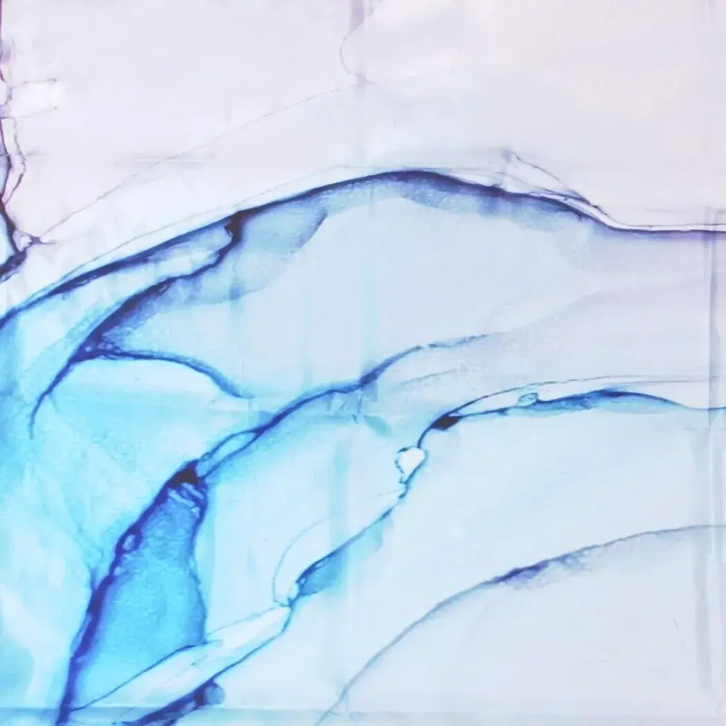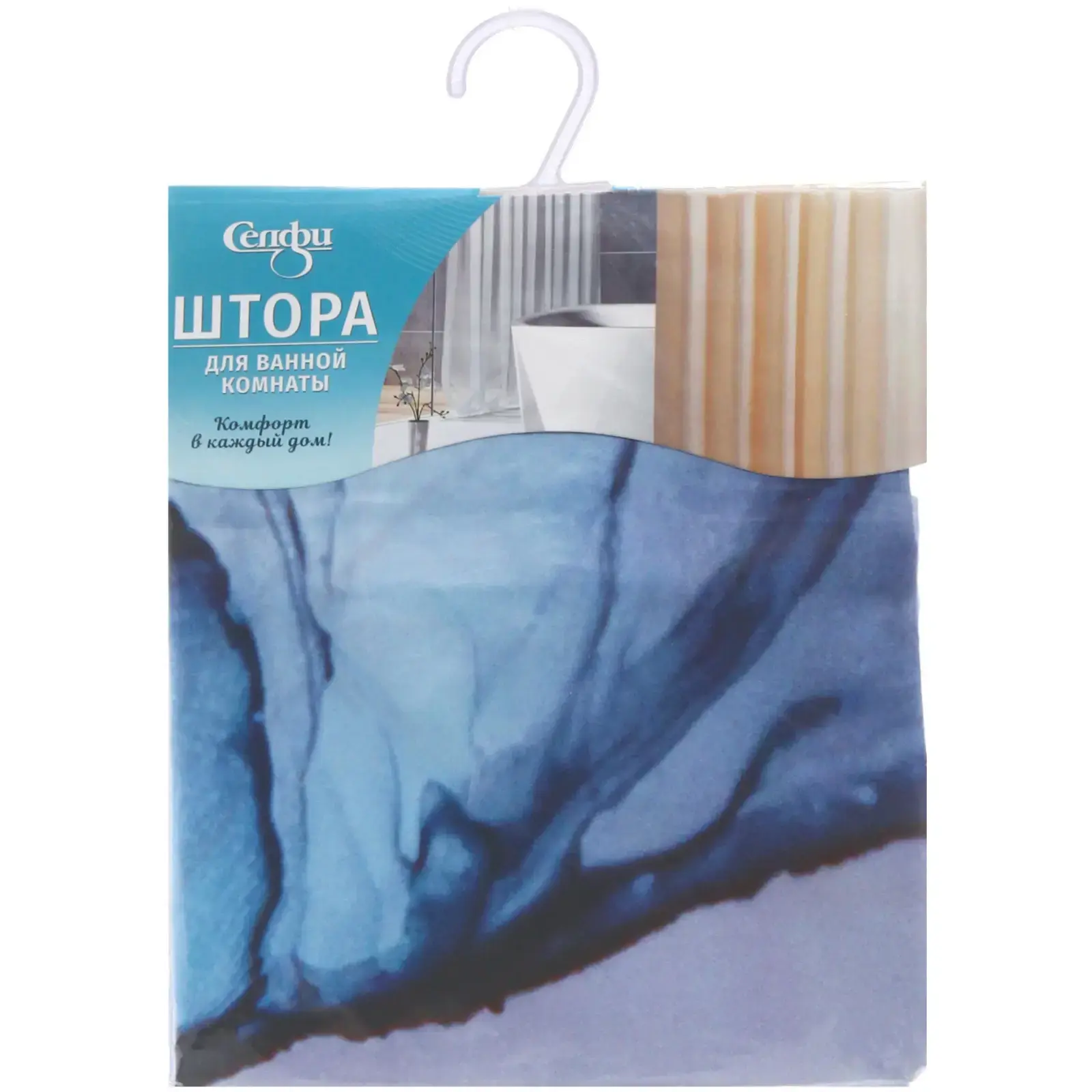 Штора «Селфи» сочетает функциональность и современный дизайн. Её волнообразный градиент голубых оттенков создаёт эффект морской глубины, превращая обычную душевую зону в эстетичный элемент интерьера.
