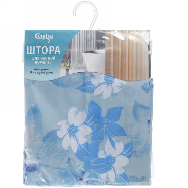 Размеры шторы составляют 180х180 см, что подходит для большинства стандартных ванных. Цветочный принт выполнен в белых и синих оттенках, что делает ее универсальной для любого интерьера. Убедитесь, что ваша ванная комната будет выглядеть стильно и современно с этой шторой!