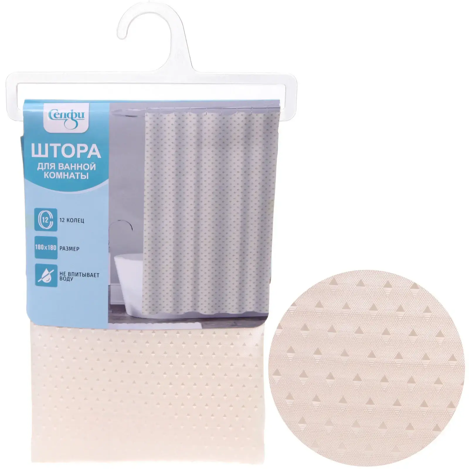 Штора представлена в нейтральном бежевом цвете с мелким узором в виде треугольников, что добавляет изысканности и стиля. В комплект входят 12 колец для крепления, что обеспечивает надежную фиксацию шторы. Выбирая эту штору, вы получаете не только функциональный, но и стильный элемент для вашей ванной комнаты.