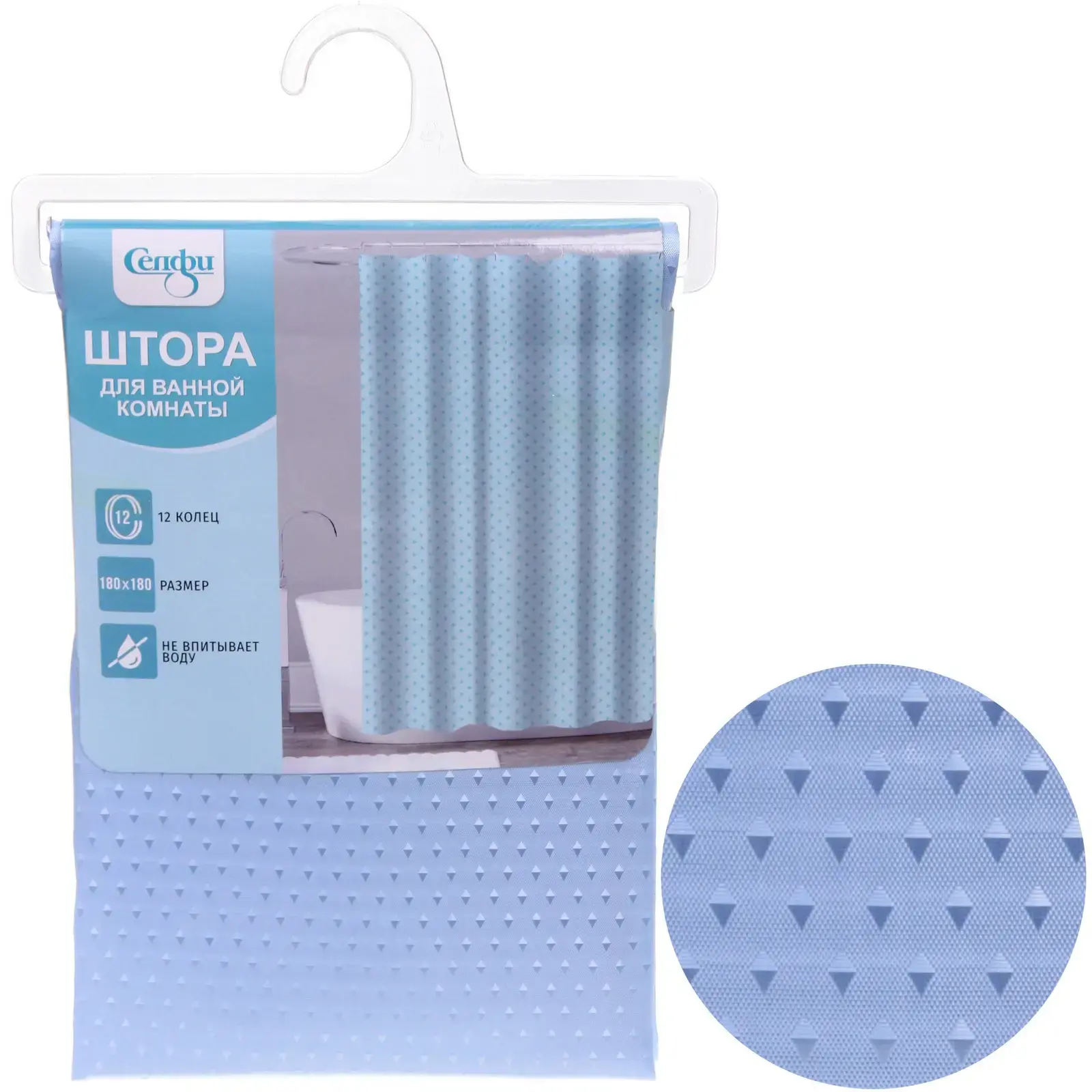 Штора для ванной «Скарлет» голубая, 180х180 см, полиэстер с водоотталкивающей пропиткой, 12 колец