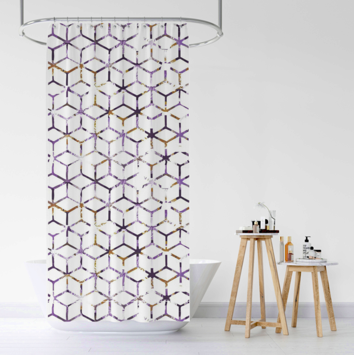 Штора для ванной 200х200 см из полиэстера — это идеальный выбор для создания комфортной и стильной атмосферы в вашей ванной комнате. Она не только защищает от брызг, но и добавляет изюминку в интерьер благодаря своему современному геометрическому узору. С этой шторой вы сможете наслаждаться душем, не беспокоясь о том, что вода попадет на пол.