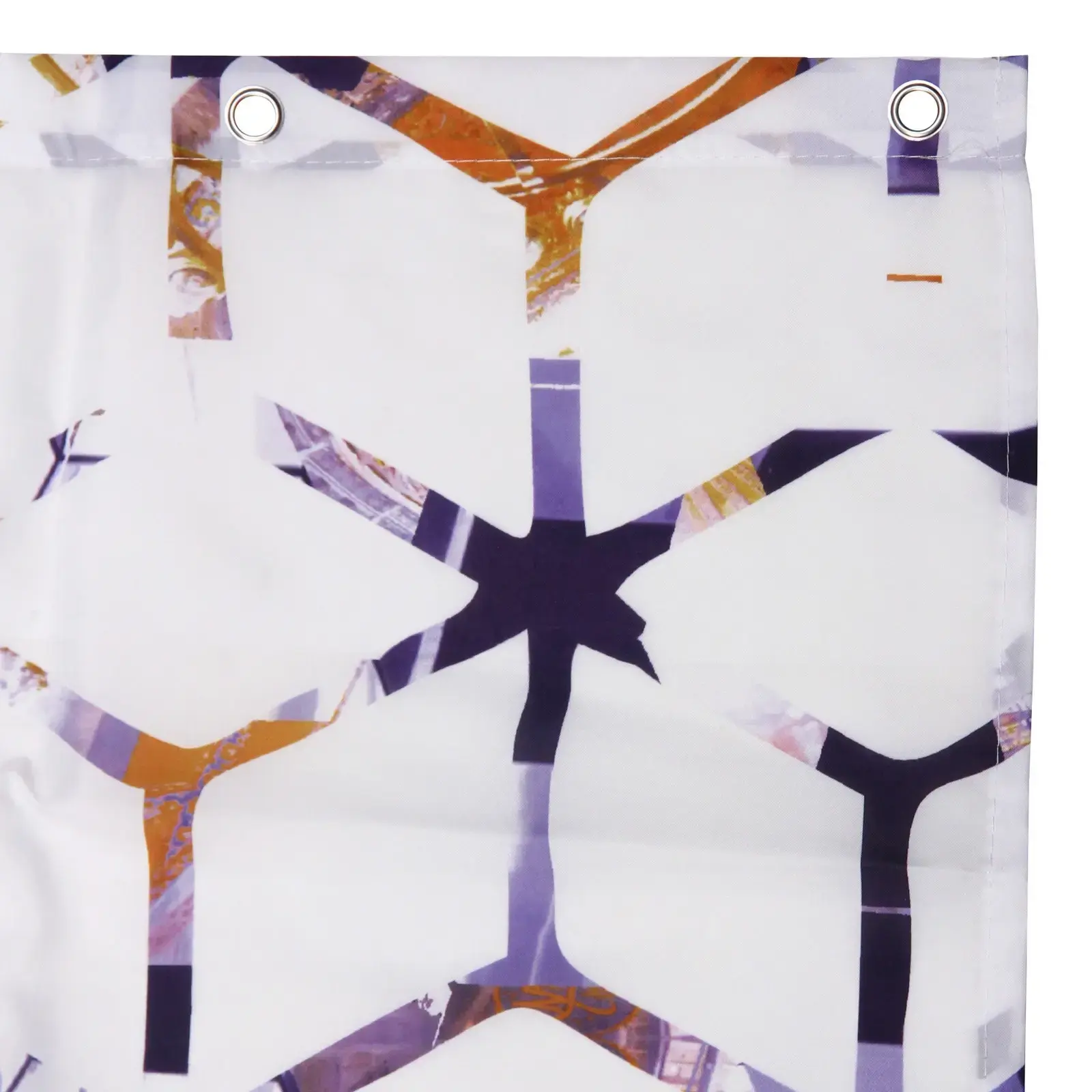 Выбирая эту штору, вы получаете не только практичное решение, но и стильный элемент декора. Она легко моется и не выцветает, что позволяет сохранять её первоначальный вид на долгое время. Геометрический узор в сочетании с белым фоном делает её универсальной для любого стиля интерьера, будь то минимализм или современный стиль.