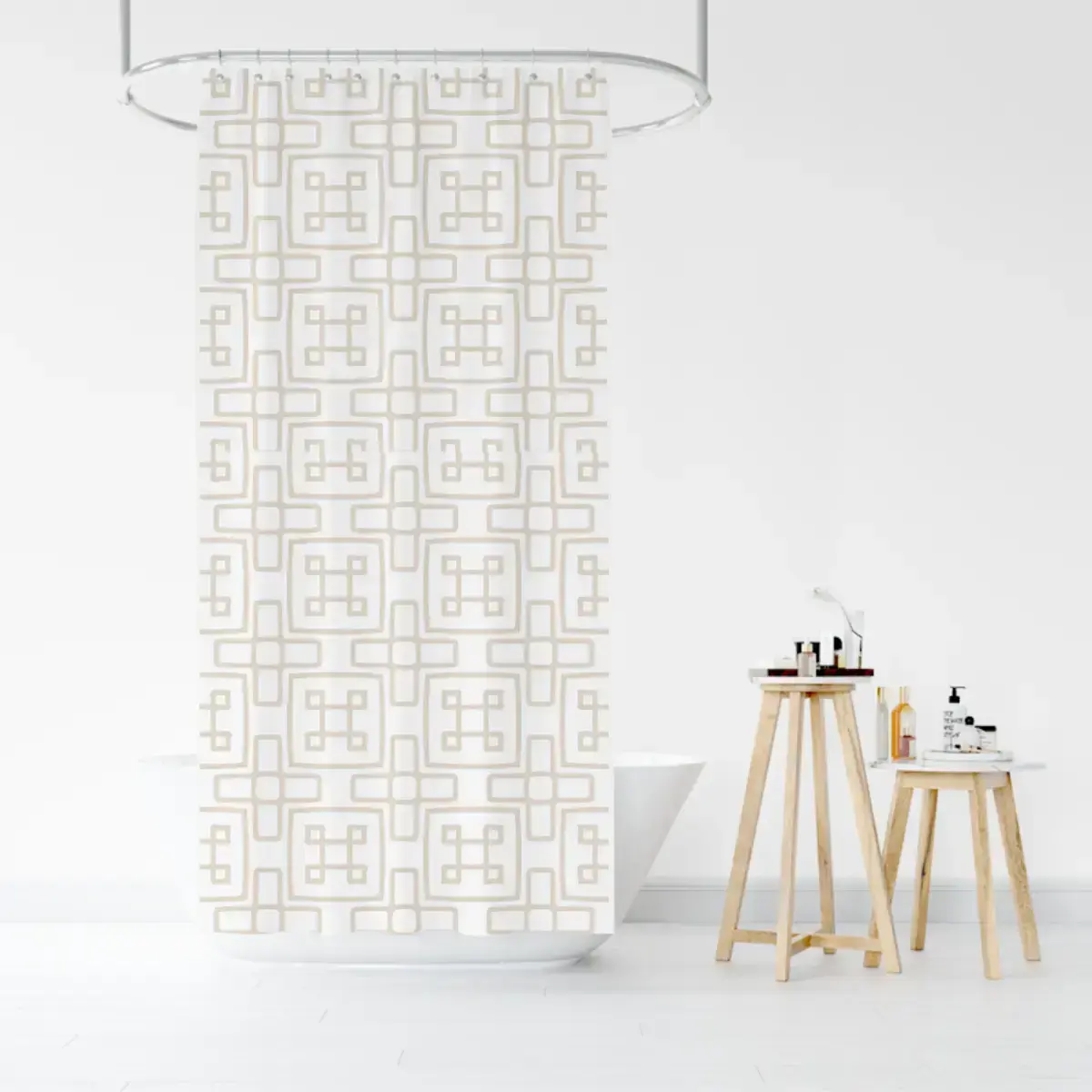 Штора легко крепится на карниз и подходит для большинства стандартных ванных. Она идеально подходит для тех, кто ценит комфорт и практичность. Легкий материал позволяет быстро высыхать, а стильный геометрический узор в бежевых и серых тонах гармонично впишется в любой интерьер.