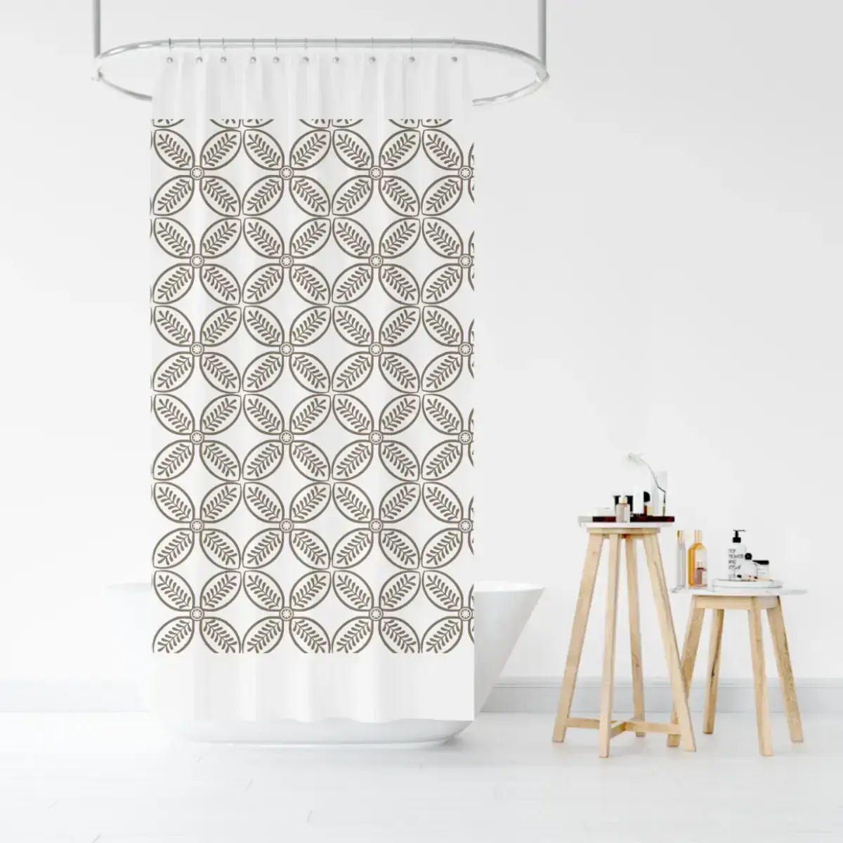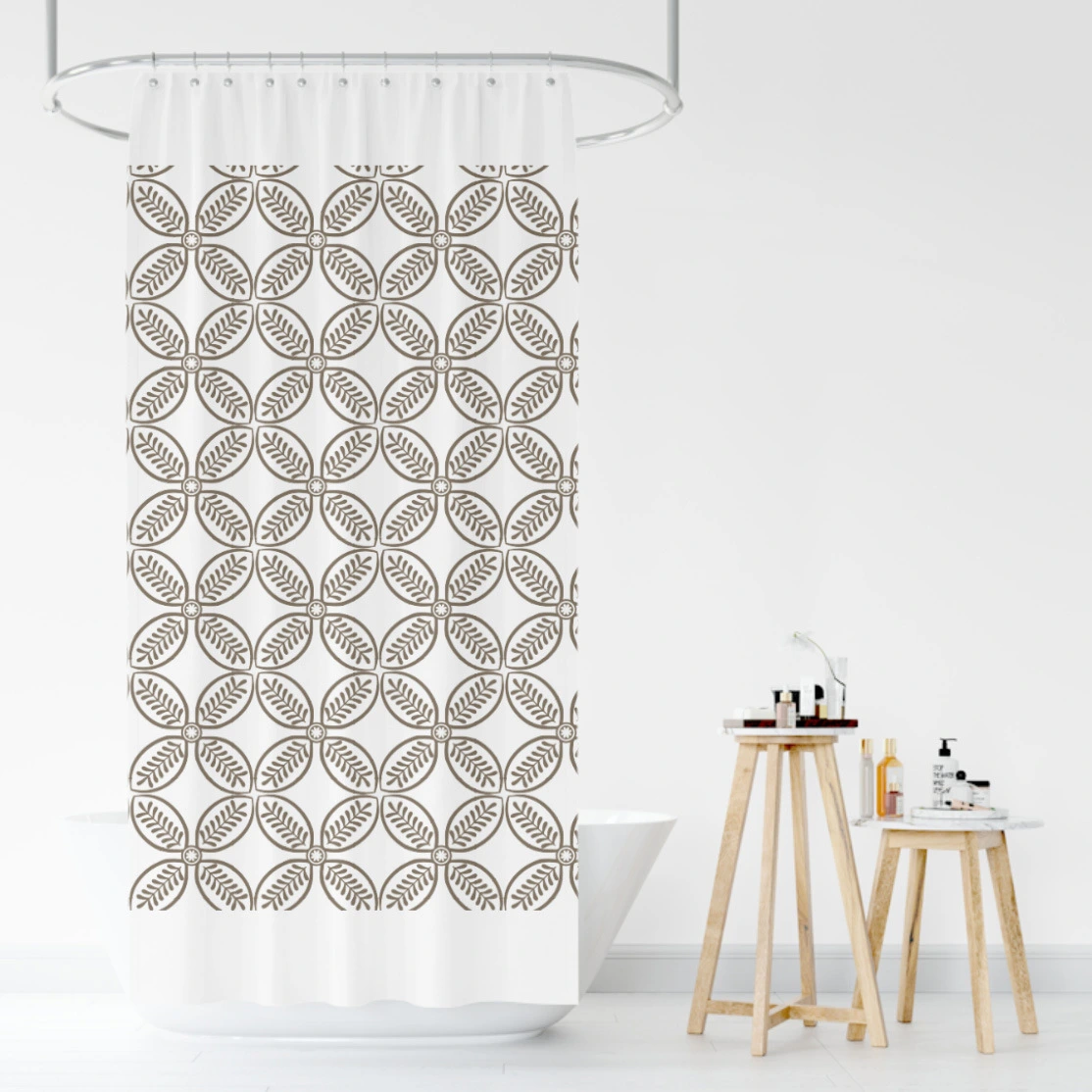Эта штора легко моется и не выцветает, что делает её идеальным выбором для повседневного использования. Она подходит как для современных, так и для классических интерьеров, благодаря своему элегантному дизайну с узором из листьев. Штора подвешивается на карниз с кольцами, что обеспечивает простоту установки и использования.