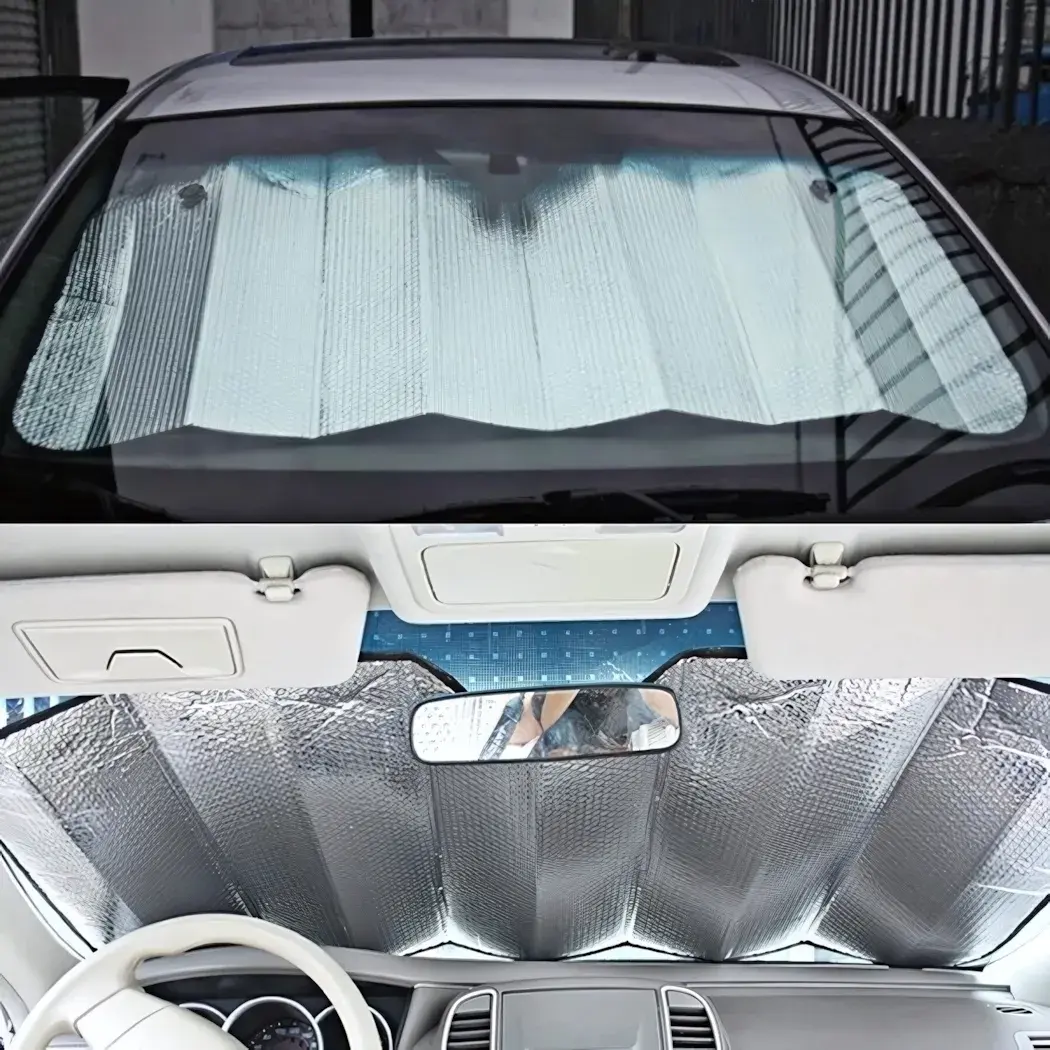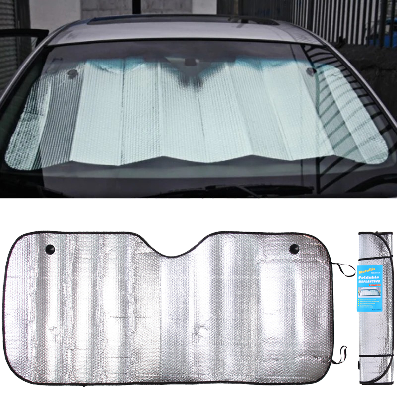 - Серебристая отражающая поверхность эффективно отражает солнечные лучи, защищая ваш автомобиль от перегрева.