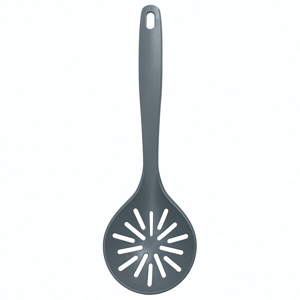 Шумовка из пластика 28 см серый, антипригарное сливное отверстие, комфортная ручка