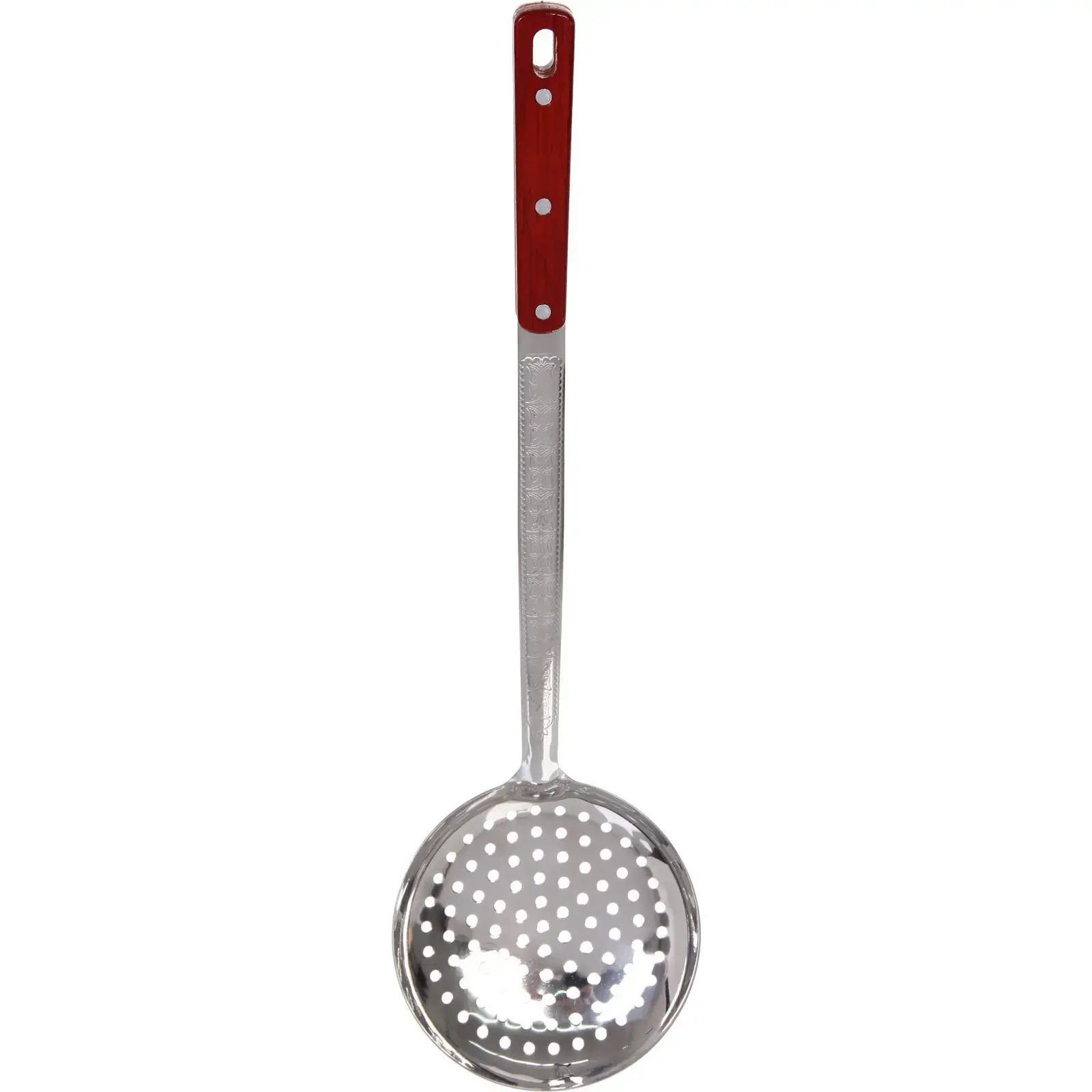Выбирая эту шумовку, вы получаете не только качественный инструмент, но и стильный элемент кухонной утвари. Нержавеющая сталь гарантирует долговечность и легкость в уходе, а возможность мыть в посудомоечной машине делает её использование еще более удобным. Красная деревянная ручка добавляет яркий акцент и делает шумовку привлекательной.