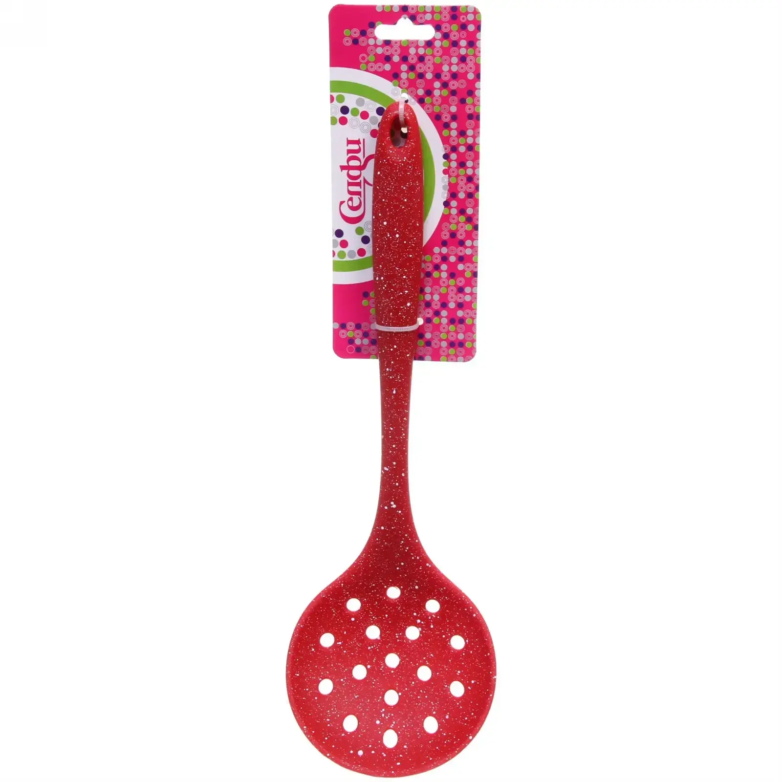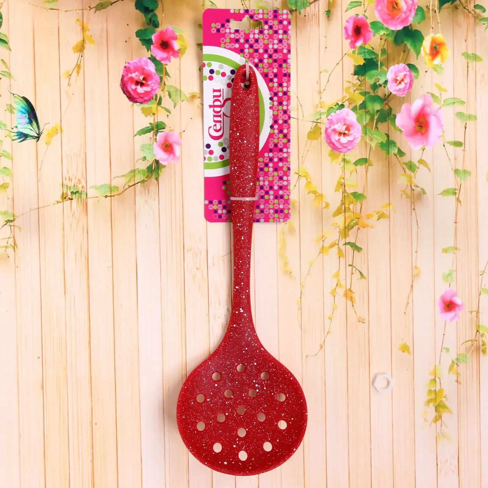 Шумовка «Bon appétit» — это идеальный помощник на вашей кухне, который обеспечит комфорт и удобство в процессе приготовления блюд. Благодаря своей яркой красной расцветке с блестками, она не только функциональна, но и станет стильным акцентом на вашей кухонной поверхности.