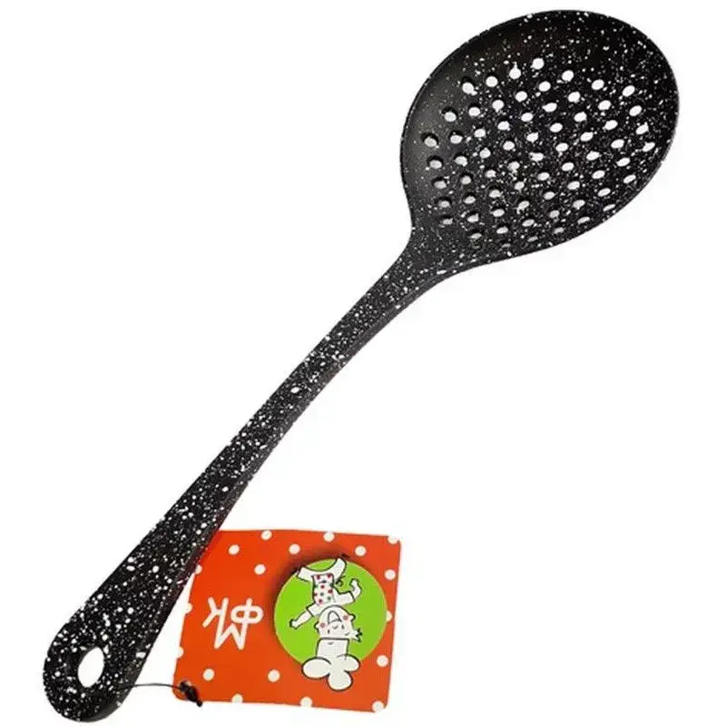 Шумовка кухонная пластиковая черная, овальная с отверстиями, отверстие для подвешивания