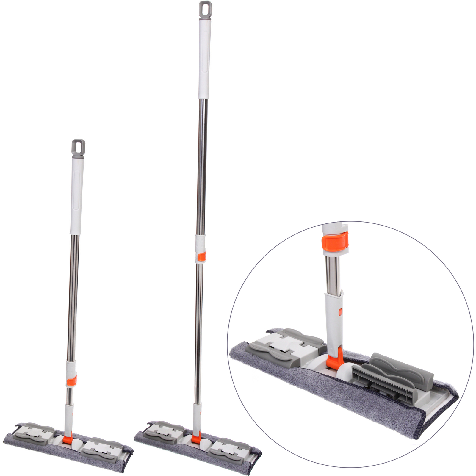 Основание выполнено из прочного пластика, ручка — из металла, что обеспечивает устойчивость к ежедневной нагрузке. Насадки из микрофибры мягко очищают поверхность, хорошо впитывают влагу и легко снимаются для стирки. Размер рабочей части 37х12 см обеспечивает оптимальный баланс между скоростью уборки и удобством использования, а общая длина до 120 см подходит для пользователей разного роста.
