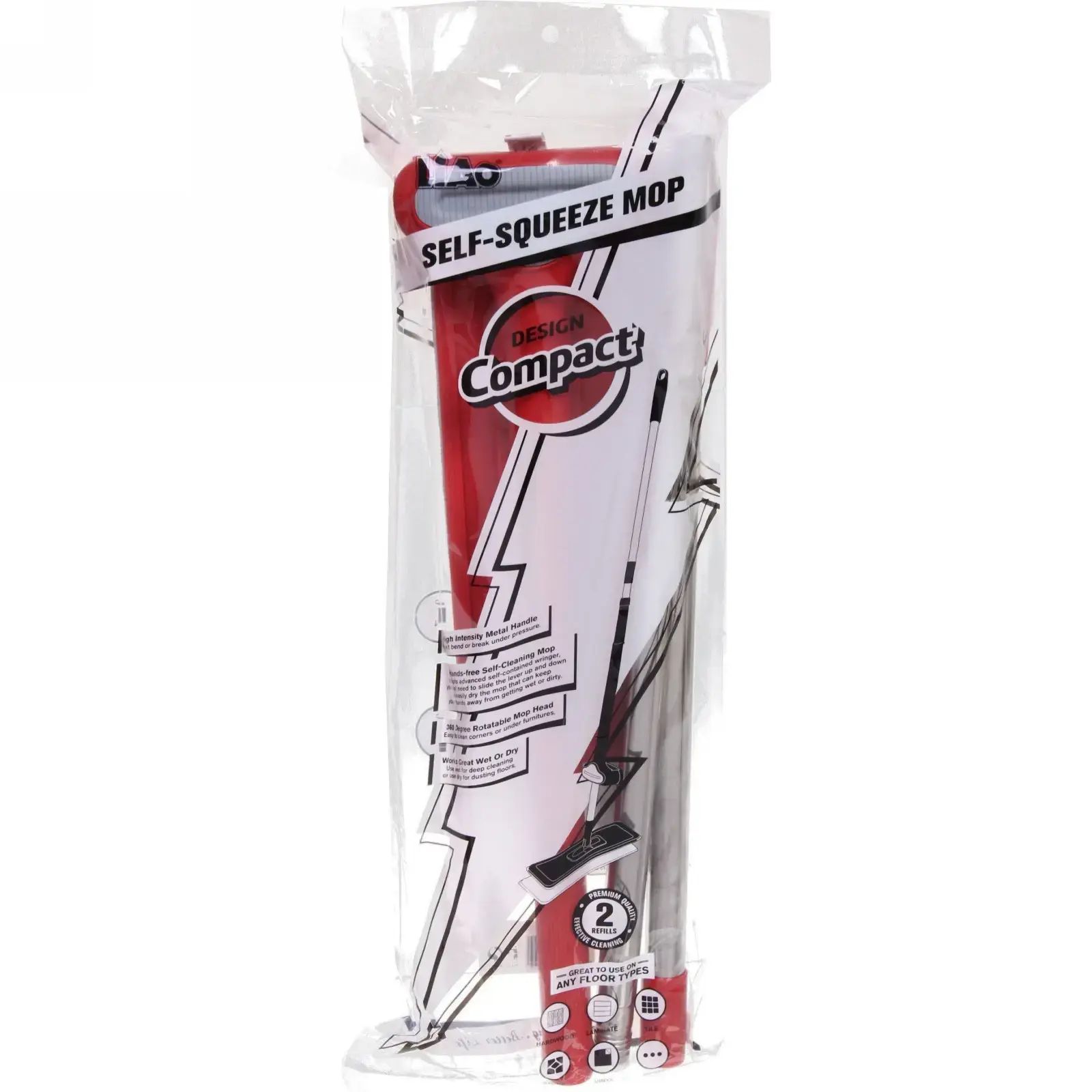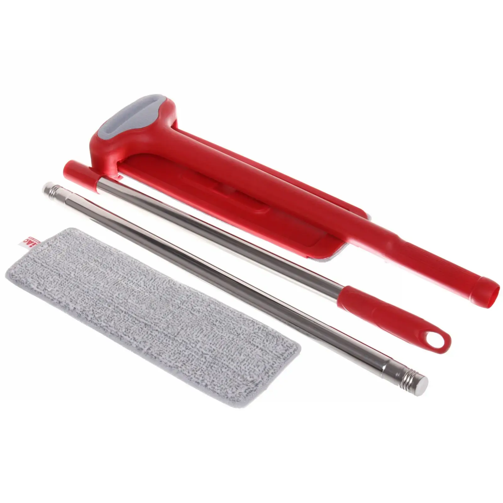 Швабра «Liao» с отжимом, 2 насадки из микрофибры, красный цвет, металл/пластик