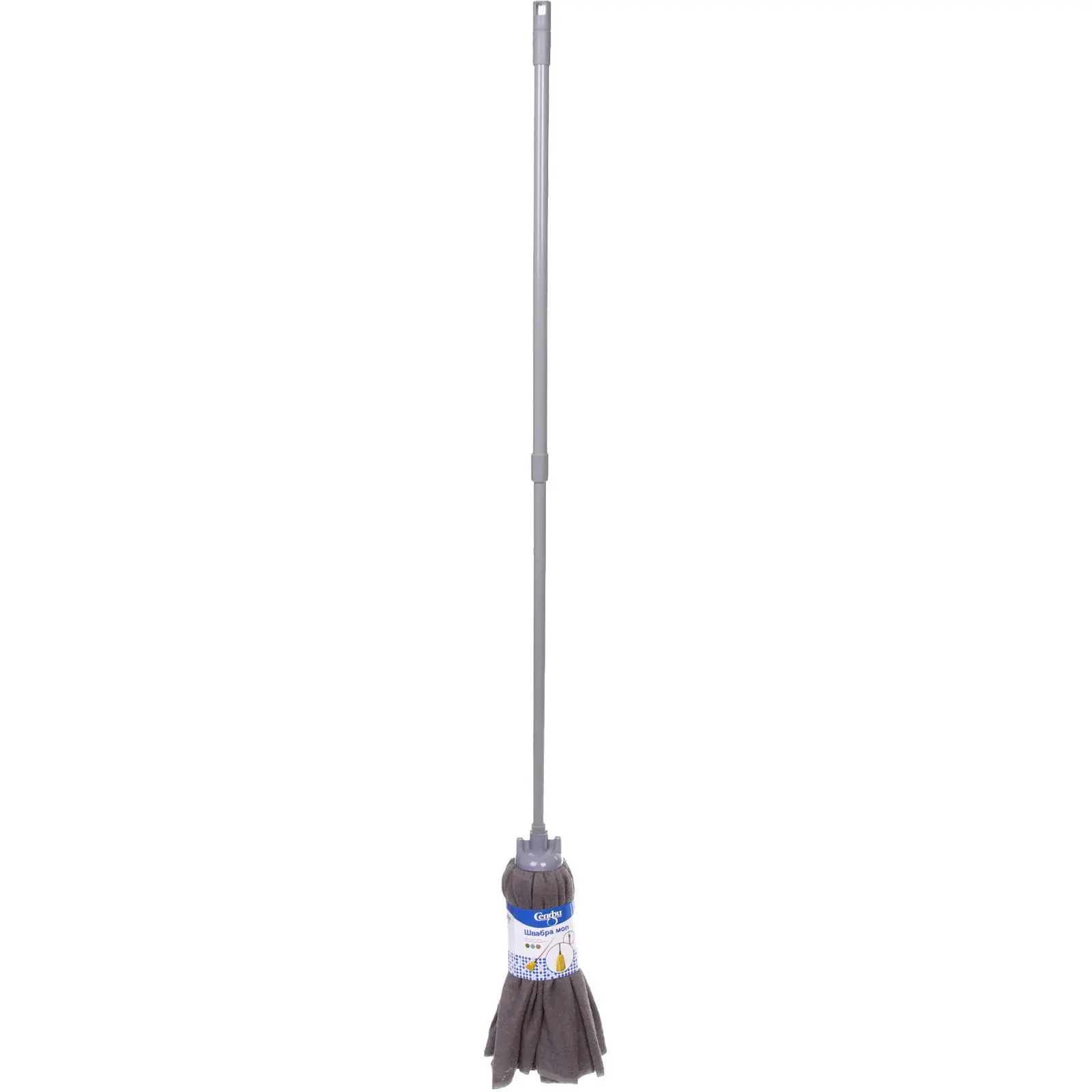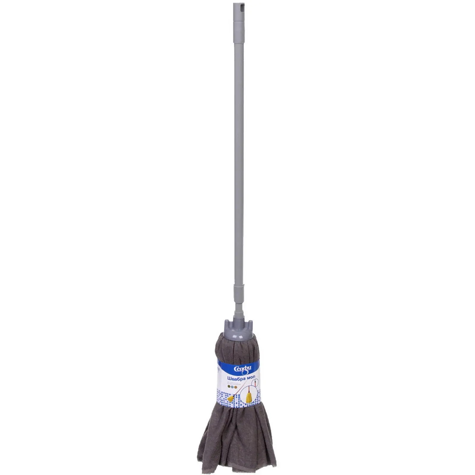 Ручка выполнена из прочного металла с пластиковыми вставками для удобства хвата. Серый цвет насадки и корпуса практичен в использовании и не требует частой стирки. Благодаря возможности смены рабочей части, швабра прослужит долго, экономя ваш бюджет и силы. Удобное крепление позволяет быстро заменить грязную насадку на чистую.