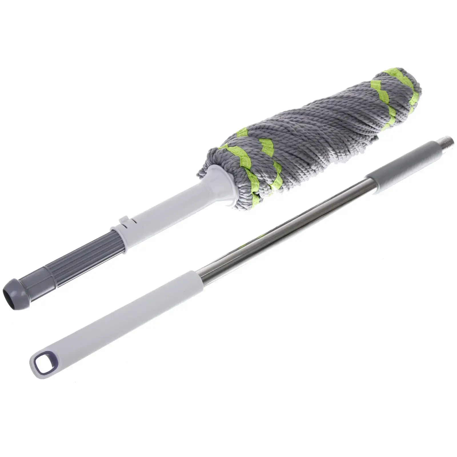 Швабра отжимная с насадкой из микрофибры гарантирует вам быструю и, самое главное, лёгкую уборку. Благодаря специальному механизму отжима, вы сможете эффективно очищать полы, не прилагая лишних усилий. Насадка фиксируется на пластиковом кольце, а микрофибра скручивается и отжимается, что позволяет вам контролировать степень отжима. Просто потяните её вверх и вращайте против часовой стрелки, чтобы добиться нужного результата.